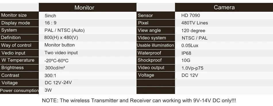 Устраняет необходимость запуска кабеля длиной транспортного средства, просто подключите передатчик в конце камеры и приемник в конце монитора.