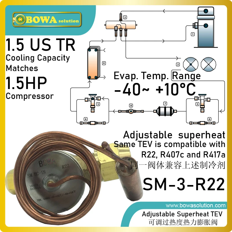 1.5TR R417A TXV (для компрессора 1.5HP) может выдерживать эффекты, которые обычно возникают при размораживании горячим газом в блоке r22.5