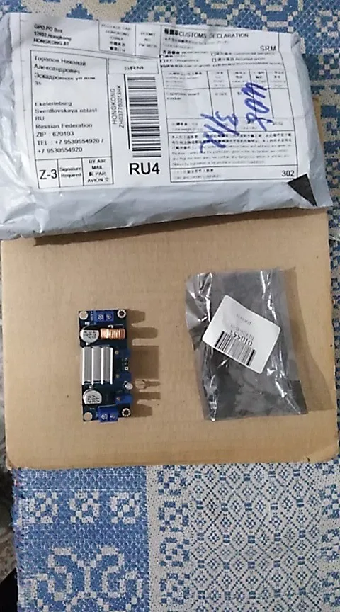 Заказал 8 декабря, получил 6 января, посылка отслеживалась в составе сборного пакета, получил на почте, упаковка хорошая, плата в антистатическом пакете. Беру эту модель уже в пятый раз, но у разных продавцов т. к не всегда бывают в наличии, удобно что плата с радиатором, уже при 2 А плата ощутимо нагревается, больше 2 ампер долговременно не рекомендую. брал для переделки шурика на литий, все клиенты довольны, цена 330 руб.