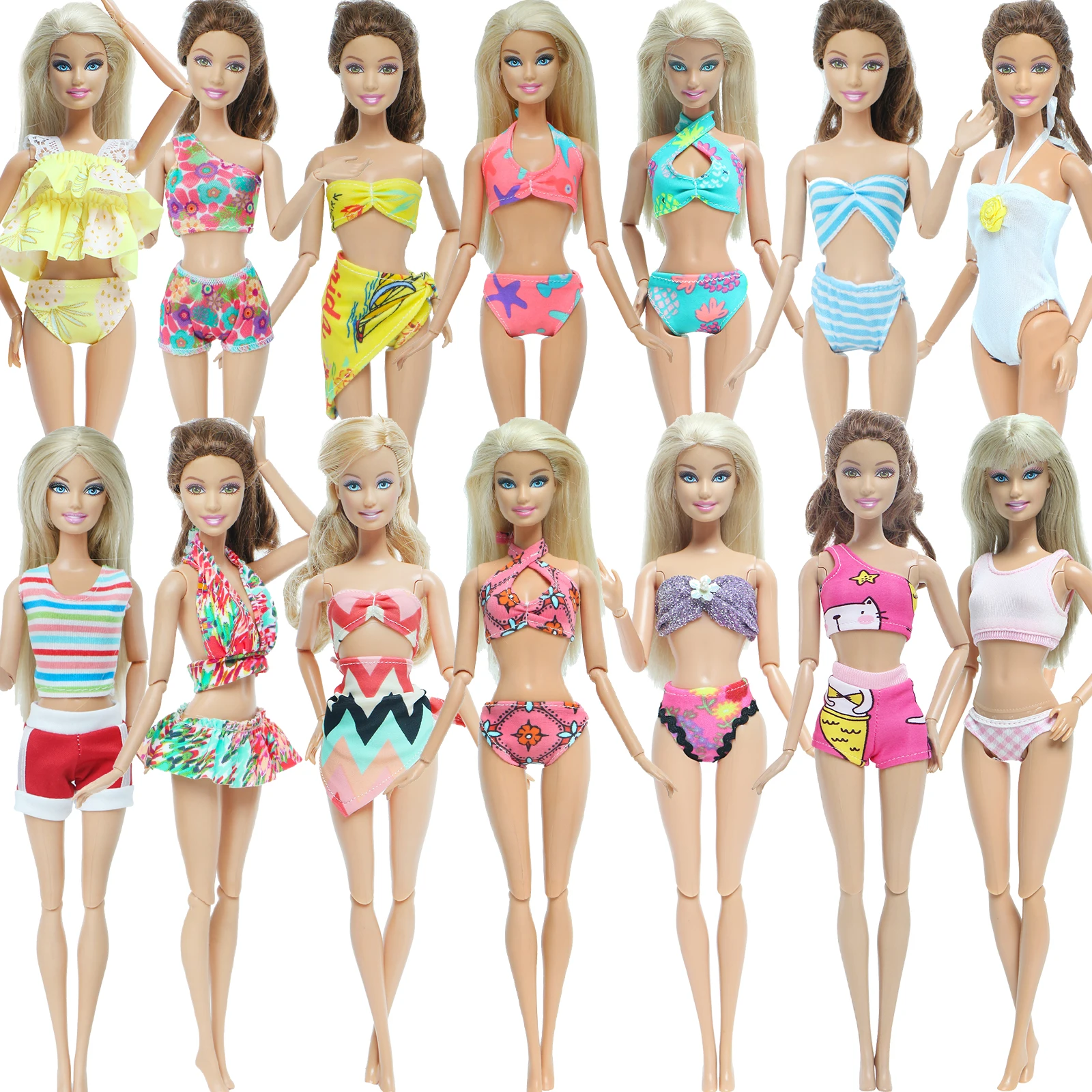 Комплект из 10 модных купальников, летняя пляжная одежда для купания, бикини, аксессуары, одежда для куклы Барби сделай сам, Рождественские Игрушки для маленьких девочек
