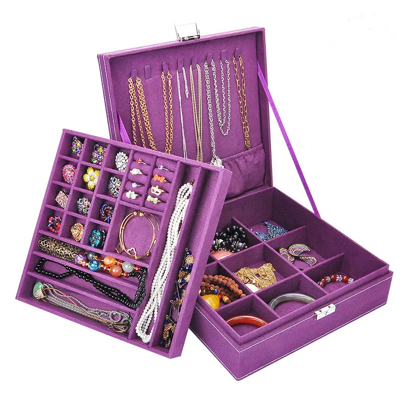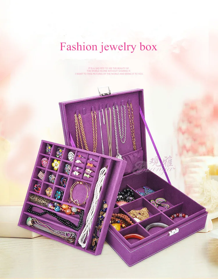 Шкатулка для украшений, фланелевая, квадратная, 2 слоя