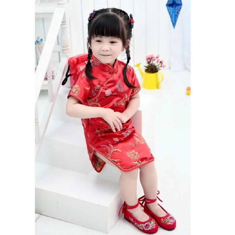 Платье Ципао с цветочным рисунком для маленьких девочек Детские платья Одежда для девочек модное традиционное китайское платье для детей 2, 4, 6, 8, 10, 12, 14, 16 лет