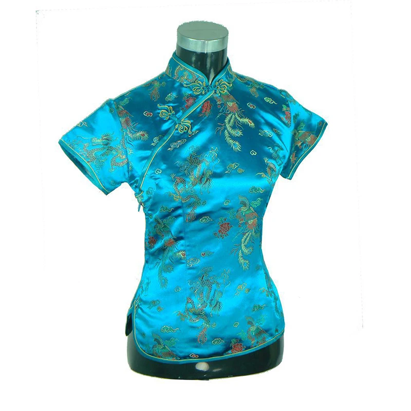 Женская рубашка из искусственного шелка, стильная блузка синего цвета с воротником-андарином, в китайском стиле Тан, Размеры s M L XL XXL A007-C
