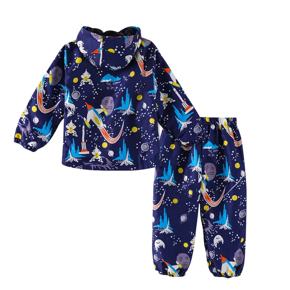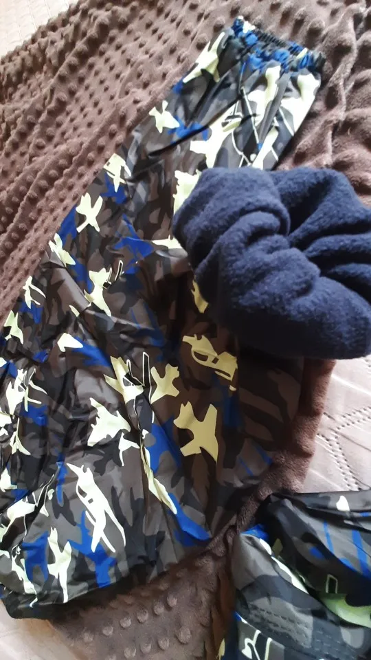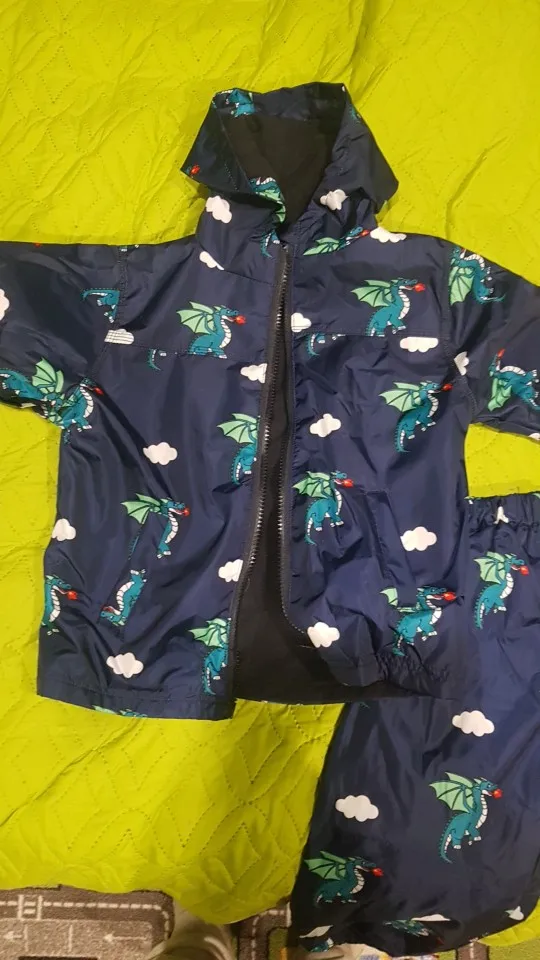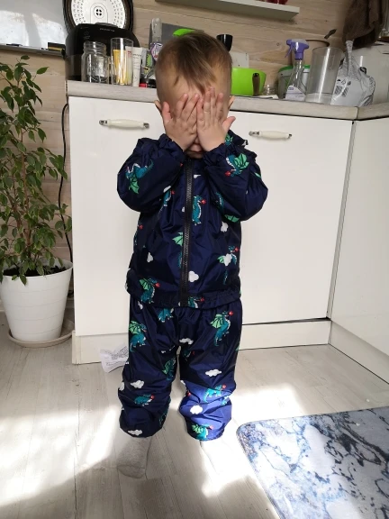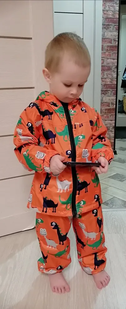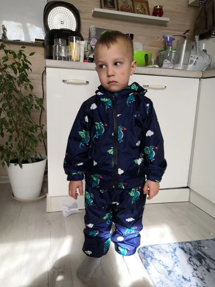 Неплохой костюмчик, мне только показалось, что цвет темнее, чем на фото. Но ребёнку понравился, это главное флис тоненький внутри, брала специально на погоду, когда уже не холодно, но сыро или дождь, Вобщем на тёплые весну - очень ил холодное северное лето. Сыну ростом 103 см и весом 18 кг подошёл хорошо, сел свободно, есть небольшой запас в длине рукавов и штанин.