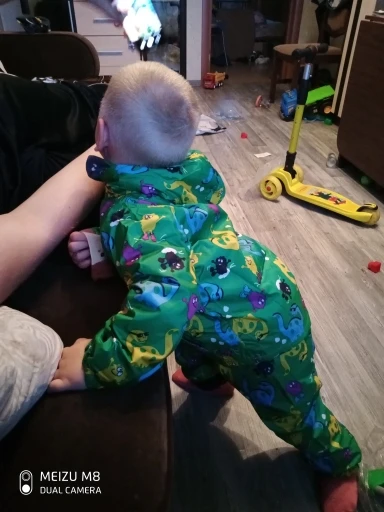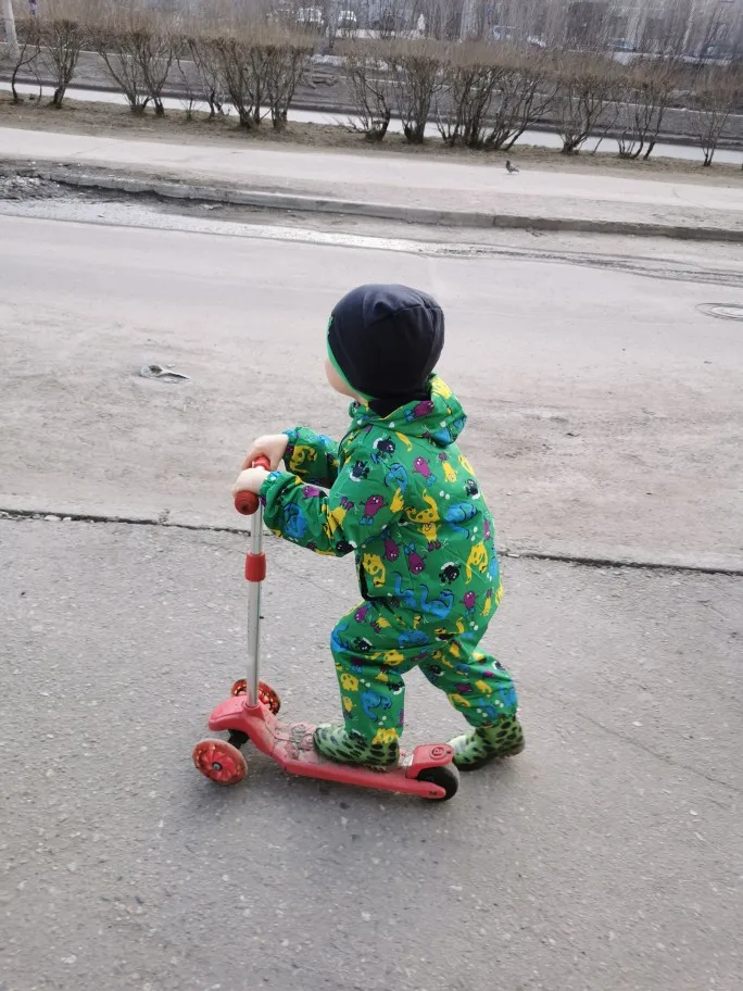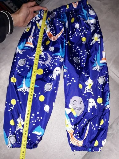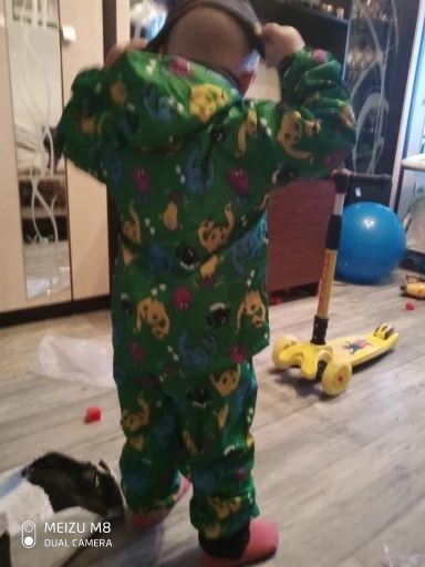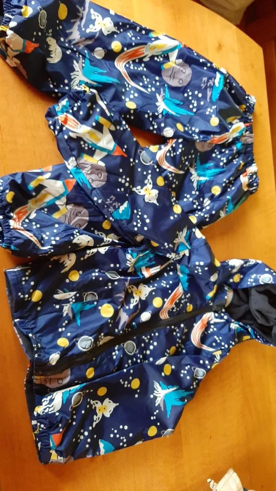 Костюм супер! Всем советую! Брала самый большой размер. Померила на сына ему -2,5 г и на дочь ей-4,9 г. Дочке маловат, но она высокая 113 см, сыну большеват с запасом. Ткань плащевая утеплена флисом-самое то на весну осень.