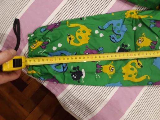 Так девчата , взяла я на дочу 2 лет рост 90см размер 5Т и не прогадала, да великоват , больше на 3 года , но я так и планировала.Штаны 56 см , у куртки длина рукава 36см.Качество как и писали выше , хорошее, материал прорезиненный , внутри флис.