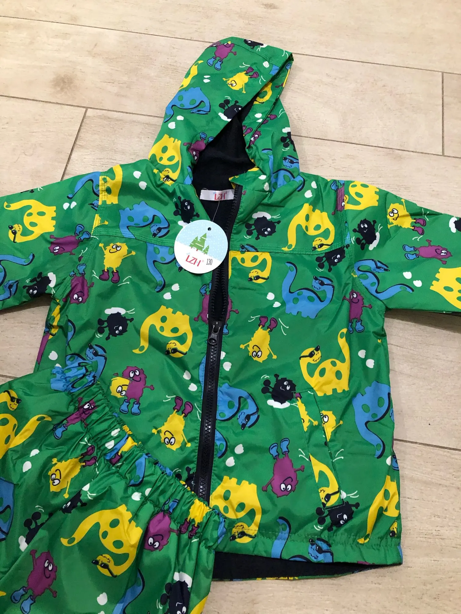 LZH детская одежда осень весна детская одежда для мальчиков дождевик водонепроницаемый пальто с динозавром + Брюки наряд костюм для девочек комплекты одежды