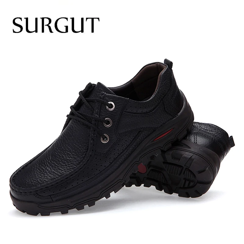 Мужская обувь на плоской подошве SURGUT, черная обувь из натуральной кожи больших размеров, размеры 38-48, летоосеньзима