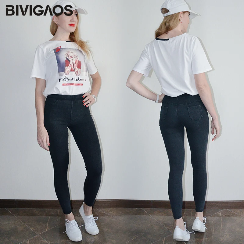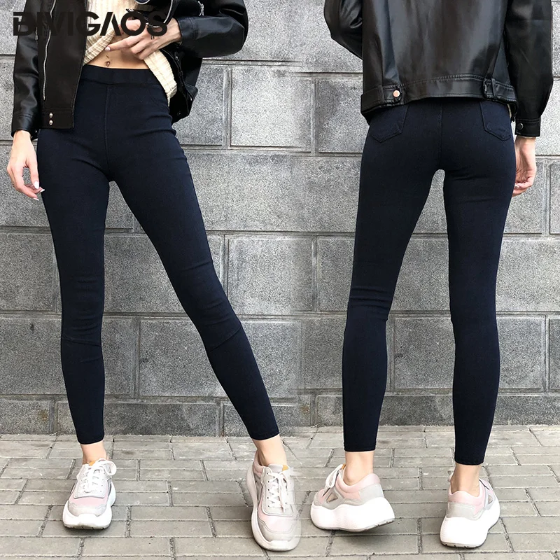 BIVIGAOS женские джинсовые леггинсы повседневные Модные обтягивающие тонкие потертые Джеггинсы тонкие эластичные джинсовые леггинсы для женщин Брюки-карандаши