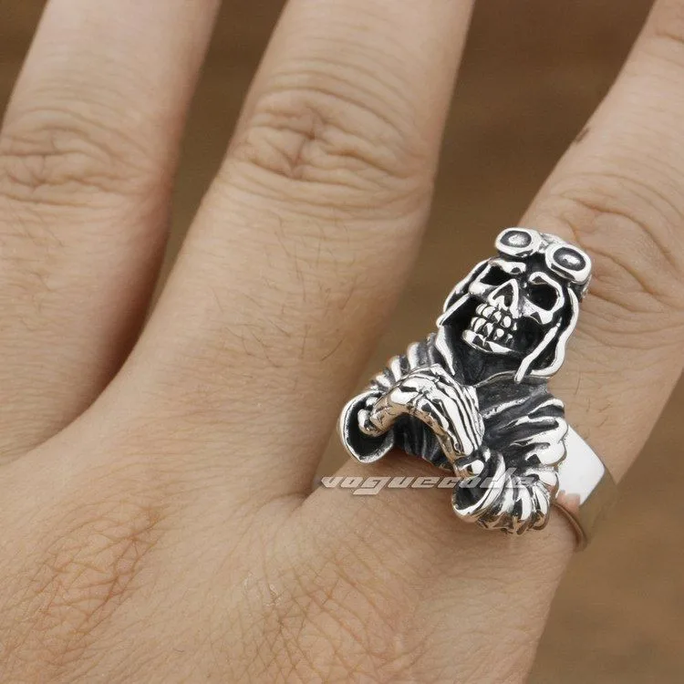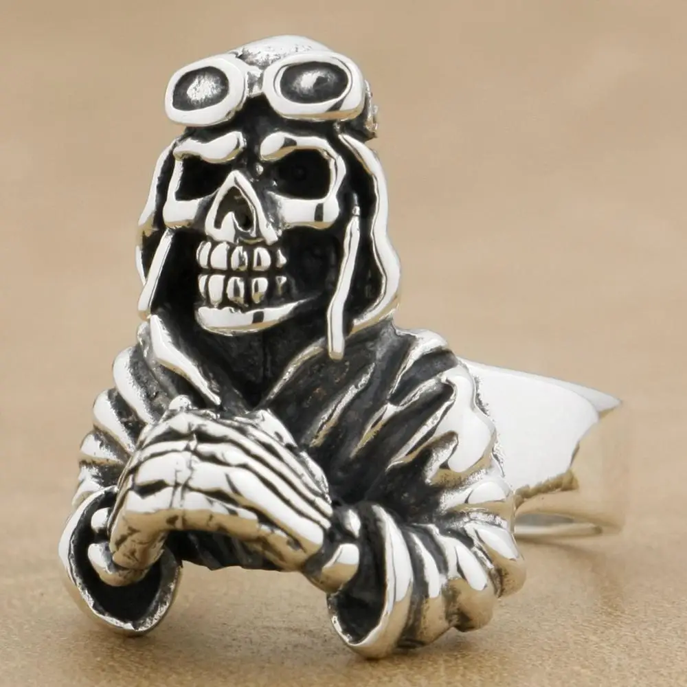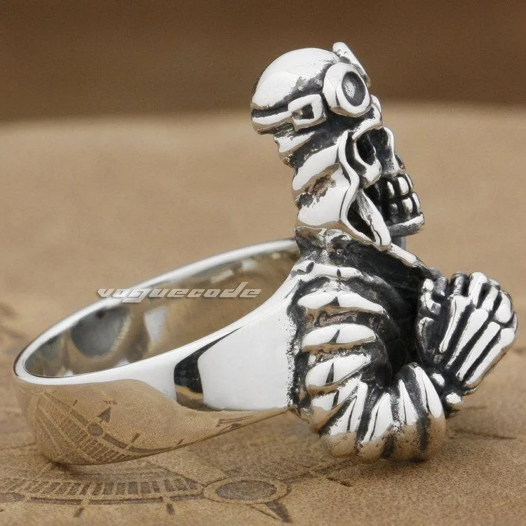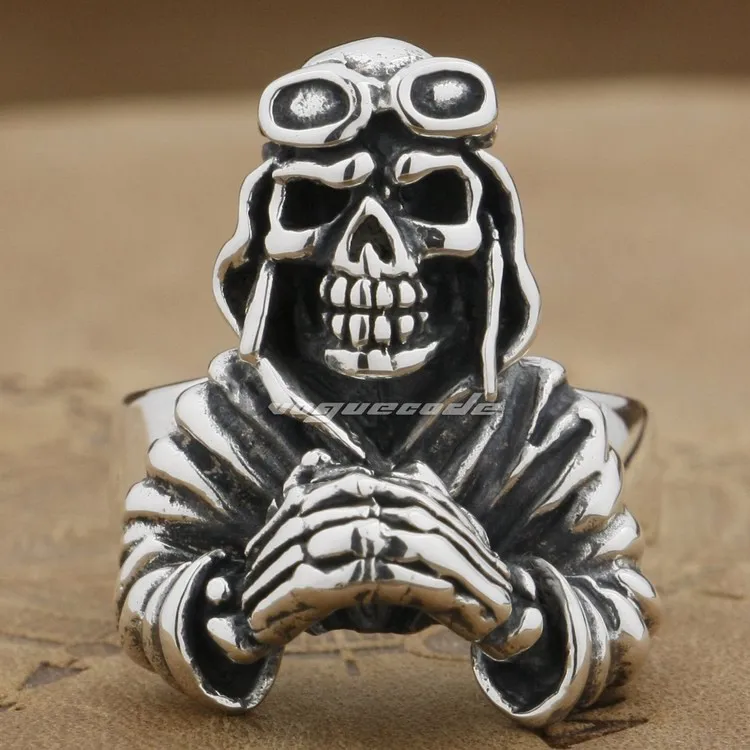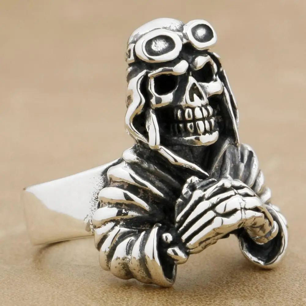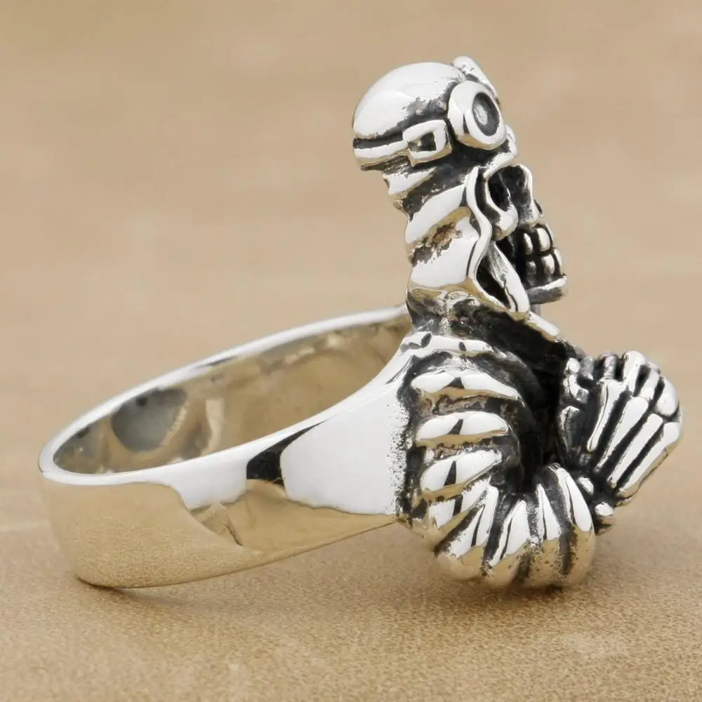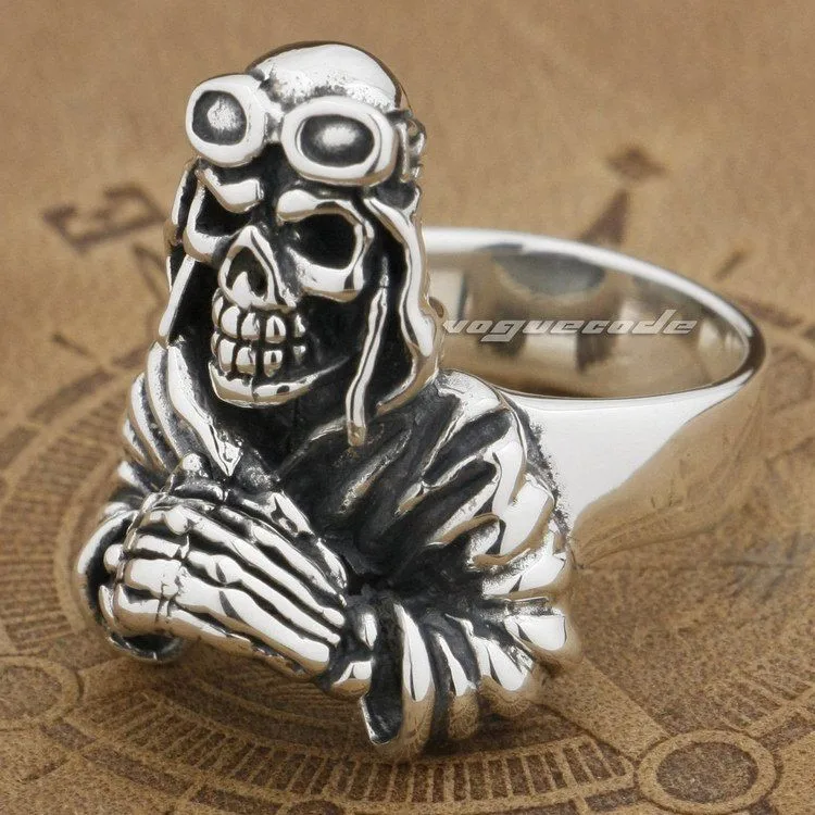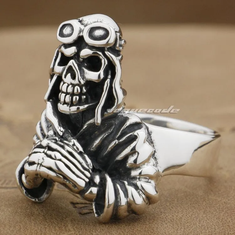 Пилот череп кольцо 925 пробы Серебряное мужское байкерское кольцо 8V011 мужское ювелирное