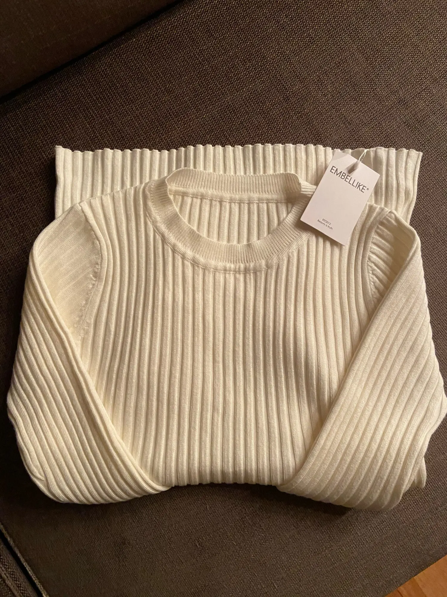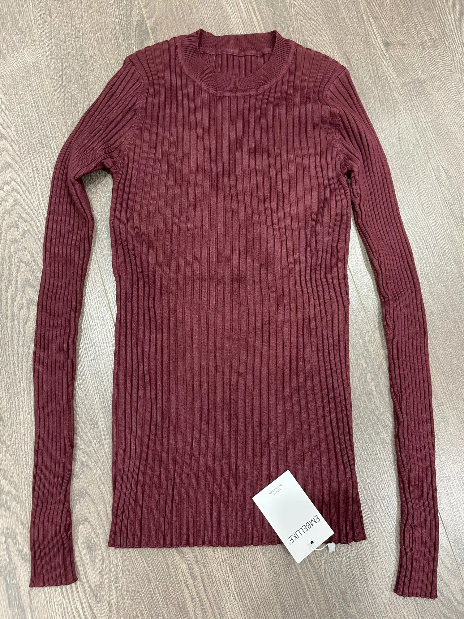 Женский свитер, пуловер, базовые вязаные в рубчик топы, однотонный лаконичный джемпер с круглым вырезом, свитеры с длинным рукавом с вырезом для большого пальца
