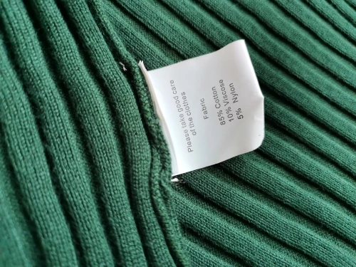 Отличная вещь фабричного качества:пошита ровно и аккуратно,без перекосов и пропущенных петель. Материал -хлопок с вискозой и немного синтетики-к телу очень приятный. Брала из-за шоколадного цвета-он глубокий и приятный. на параметры 91/73/90 сел хорошо,можно заправлять,можно носить навыск.Покупка однозначно стоящая,советую брать