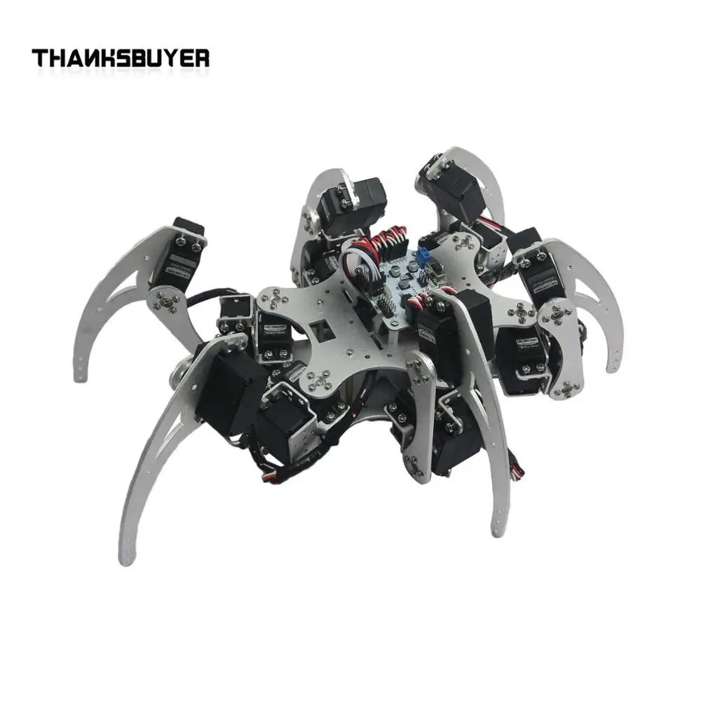 18DOFАлюминиевый шестигранный робот-паук с шестью ножками, комплект из 18 серводвигателей и шариковых подшипников, полностью совместим- Черный