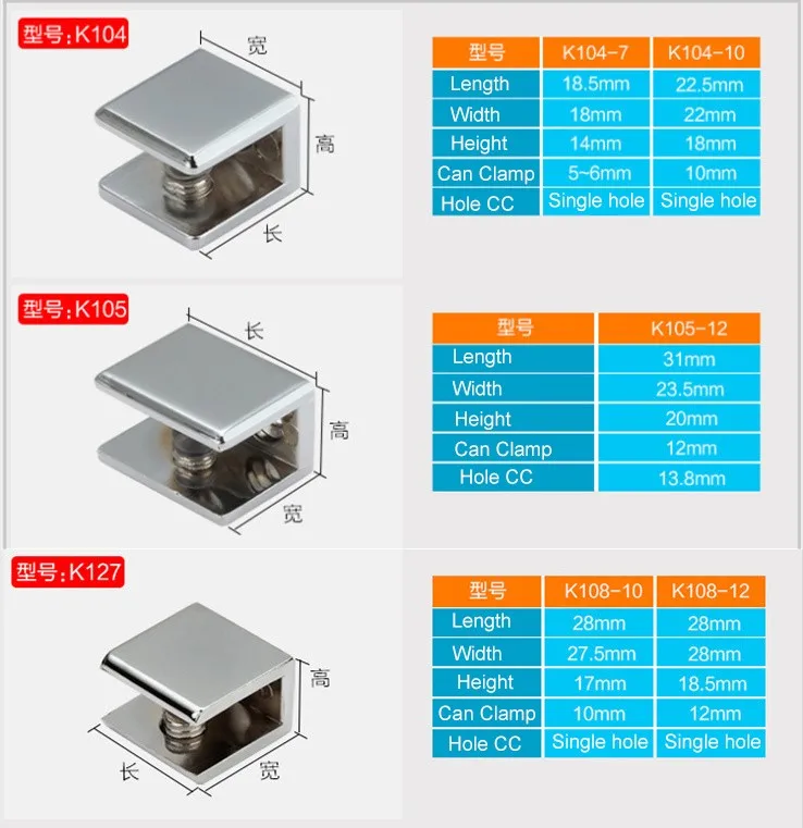 Стеклянный зажим квадратной формы из цинкового сплава 2 шт.лот, Глянцевая блестящая подставка для полки, зажим 6 мм10 мм12 мм