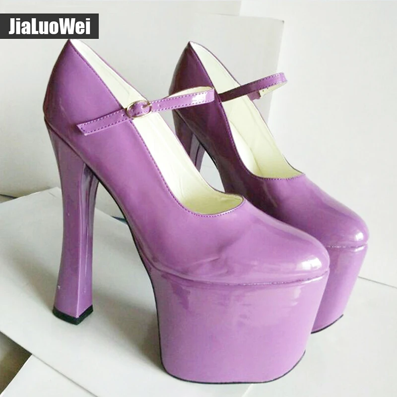 Jialuoweiчерные лакированные туфли-лодочки Мэри Джейн на платформе с толстым каблуком 7 12 дюйма с платформой 3 12 дюйма туфли-лодочки на высоком каблуке обувь для косплея