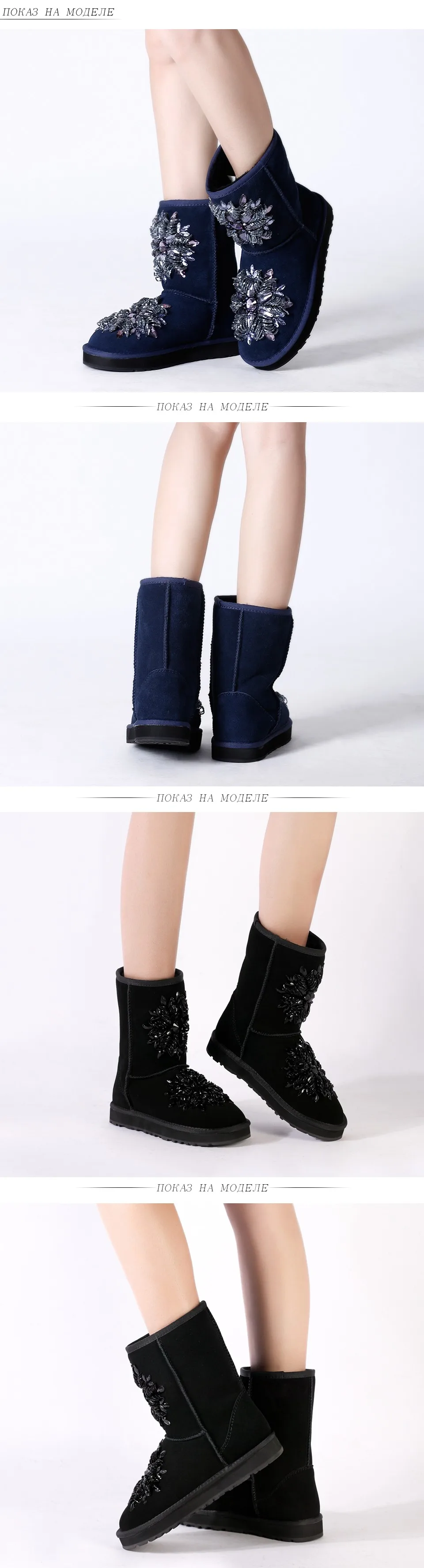 BASSIRIANA - женские зимние сапоги из натуральной овчины в синем цвете со стразами icon star icon star icon star icon star icon star