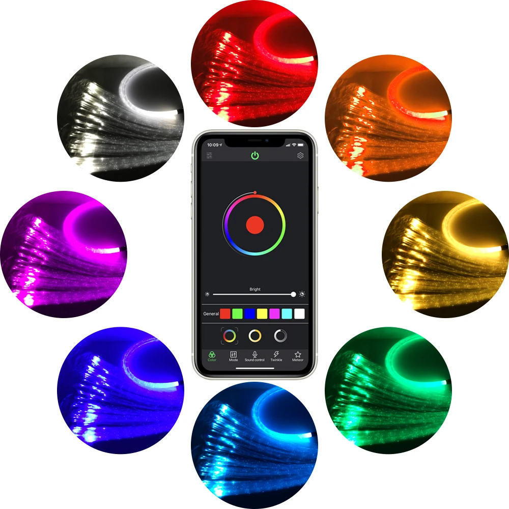 * Оптическое волокно ярких цветов и ритм ударов, широко используется для украшения занавесок, экрана, потолочного неба.