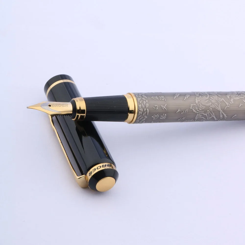 Высокое Качество Бренд baoer 507 авторучка серый "восемь лошадей" металлический подарок 0,7 мм перо Канцтовары офисные школьные письменные принадлежности новинка