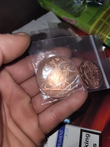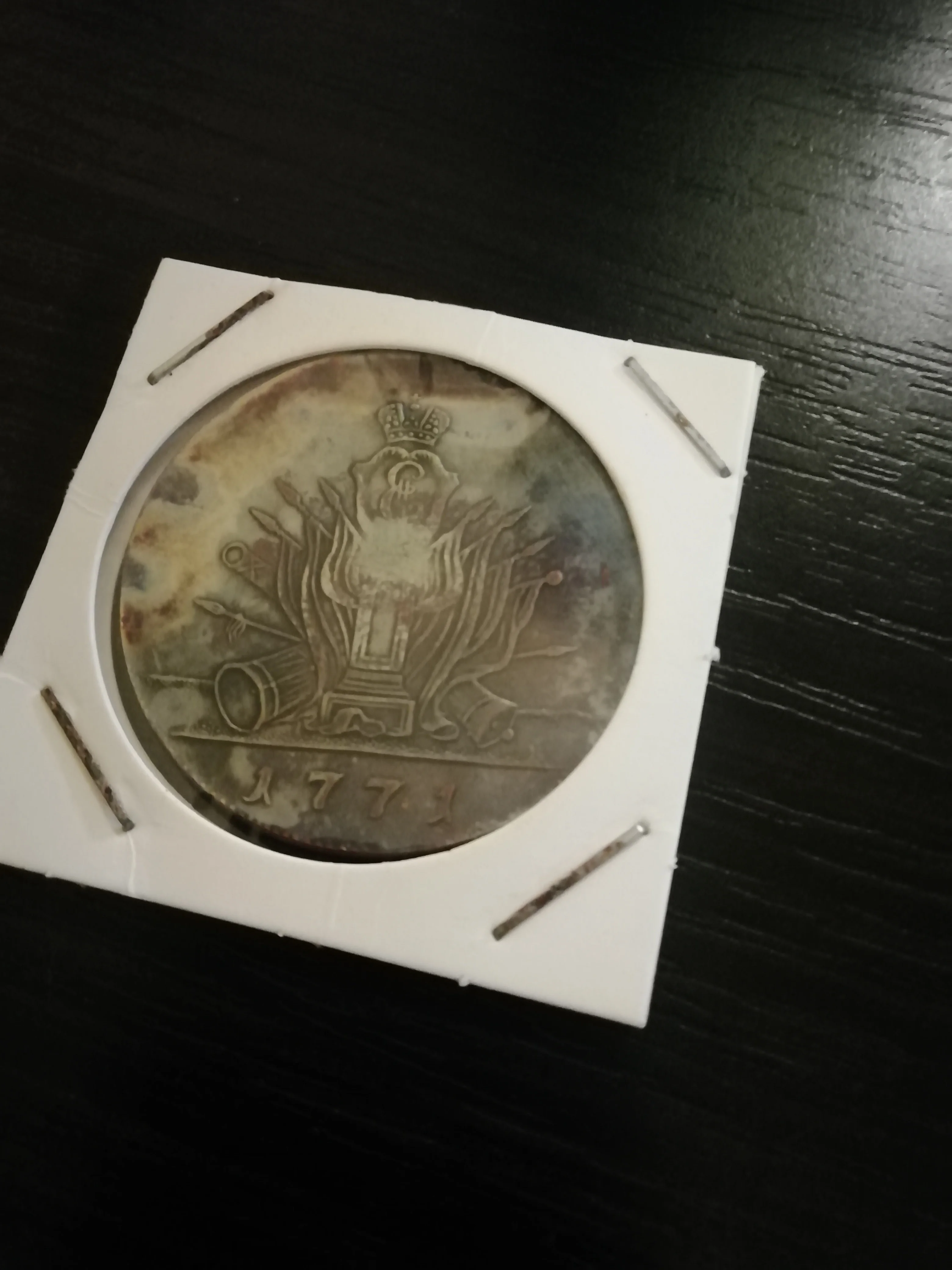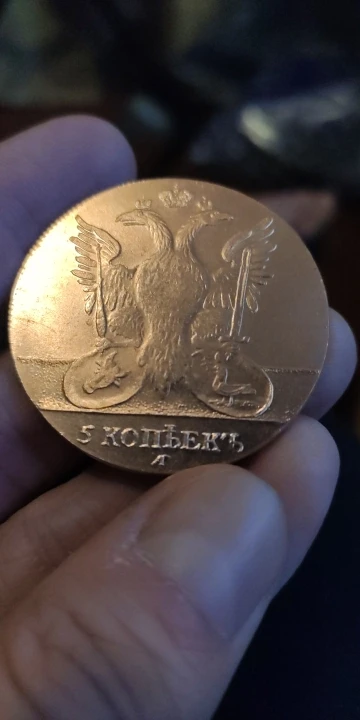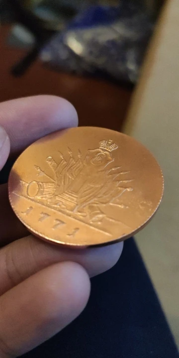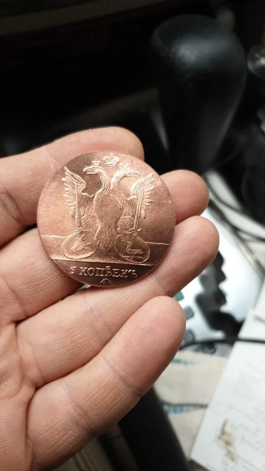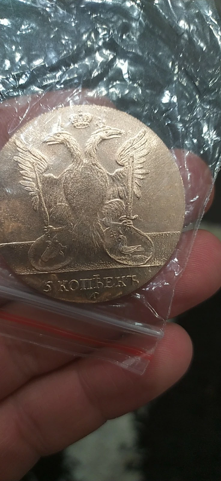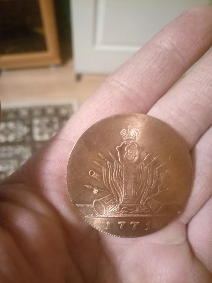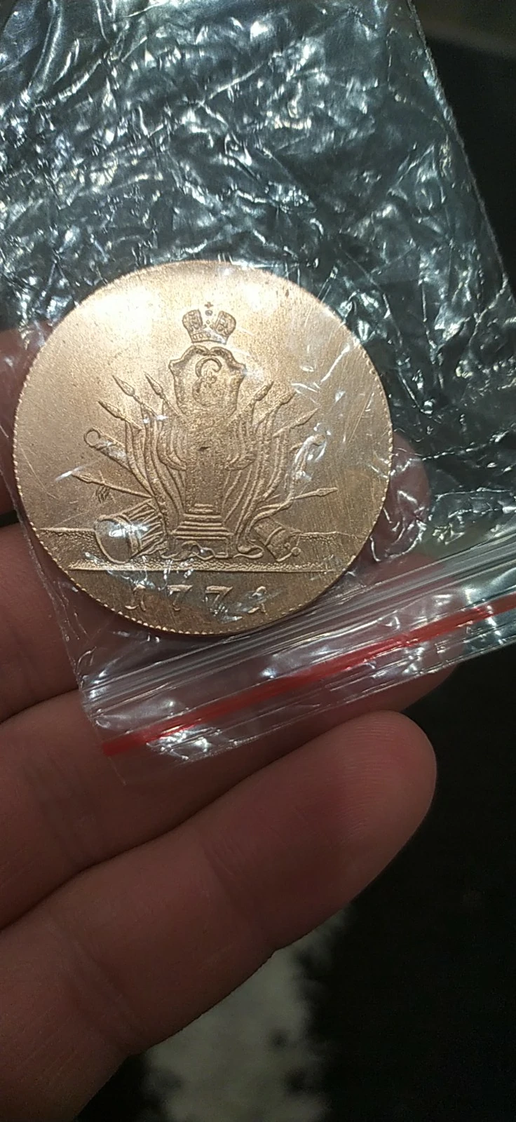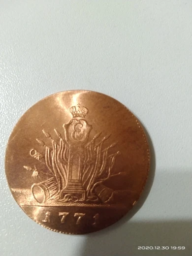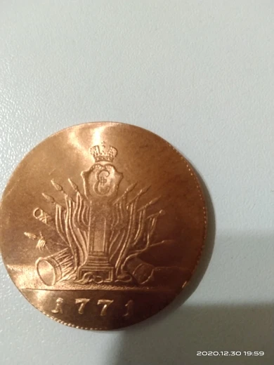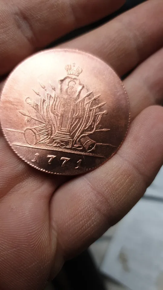 Плохая копия. Тонкая, рельеф плохой, смазанный, гурт отсутствует. Такое впечатление что монета выбита из миллиметровой меди.