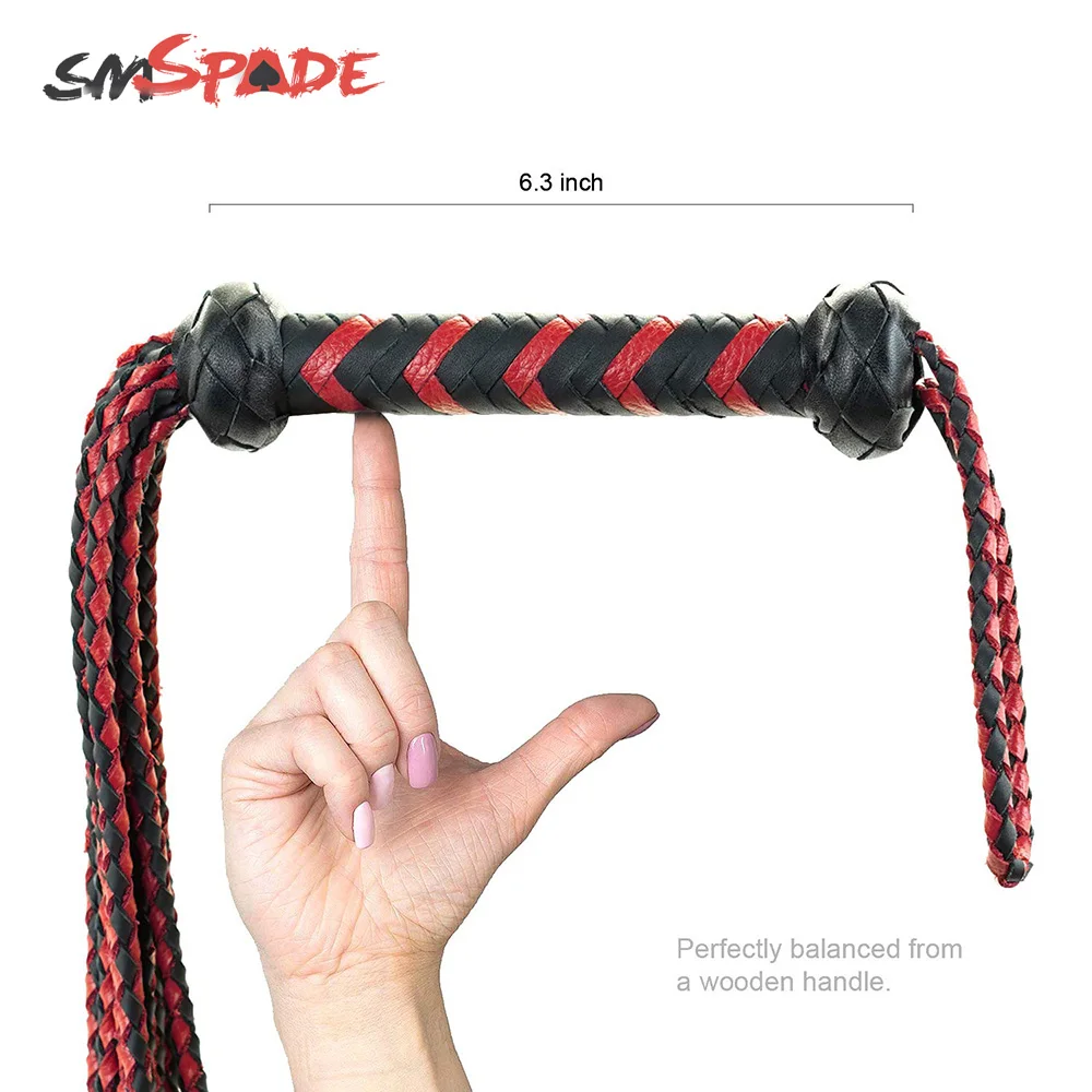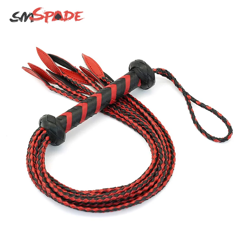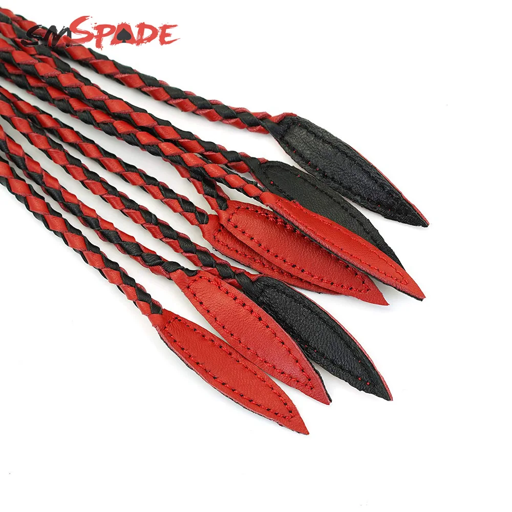 SMspade 60 см черный и красный кожаный хлыст-флоггер, ручная работа, конский плетка, конский гонок, флоггер, секс-игрушки для мужчин