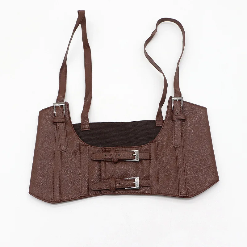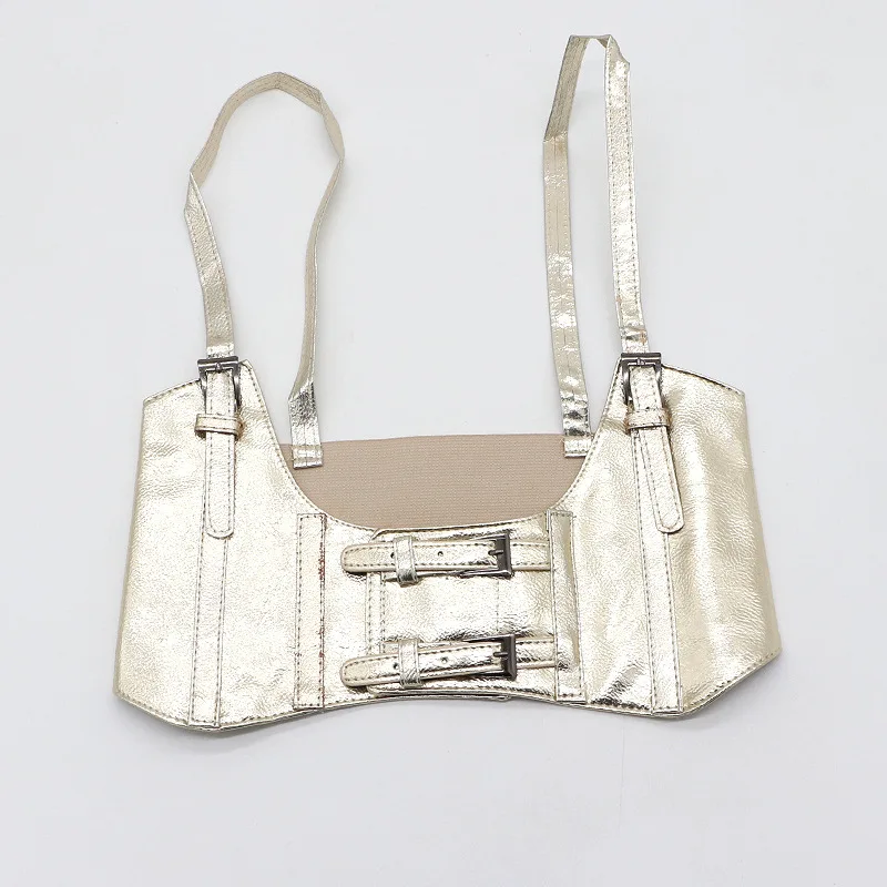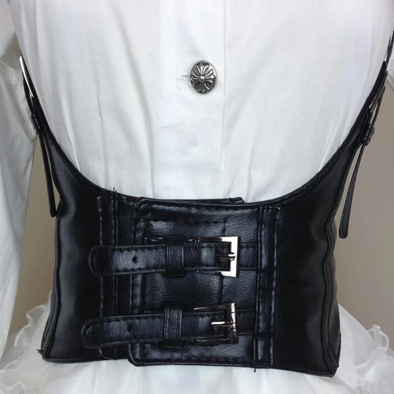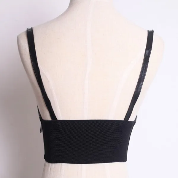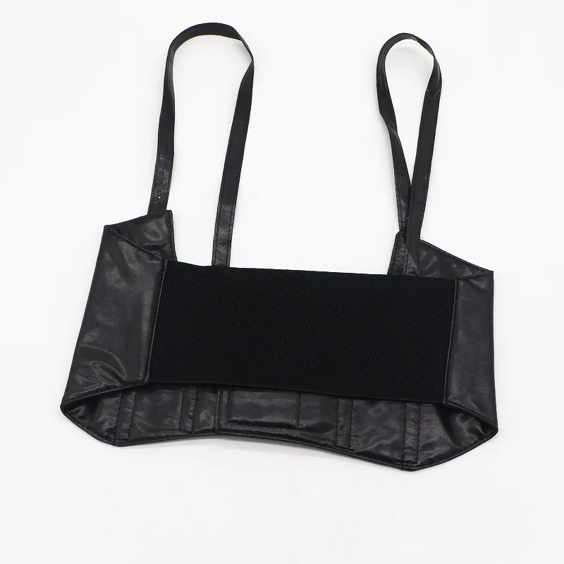 Поясной ремень женский, черный, с металлическими вставками, эластичный