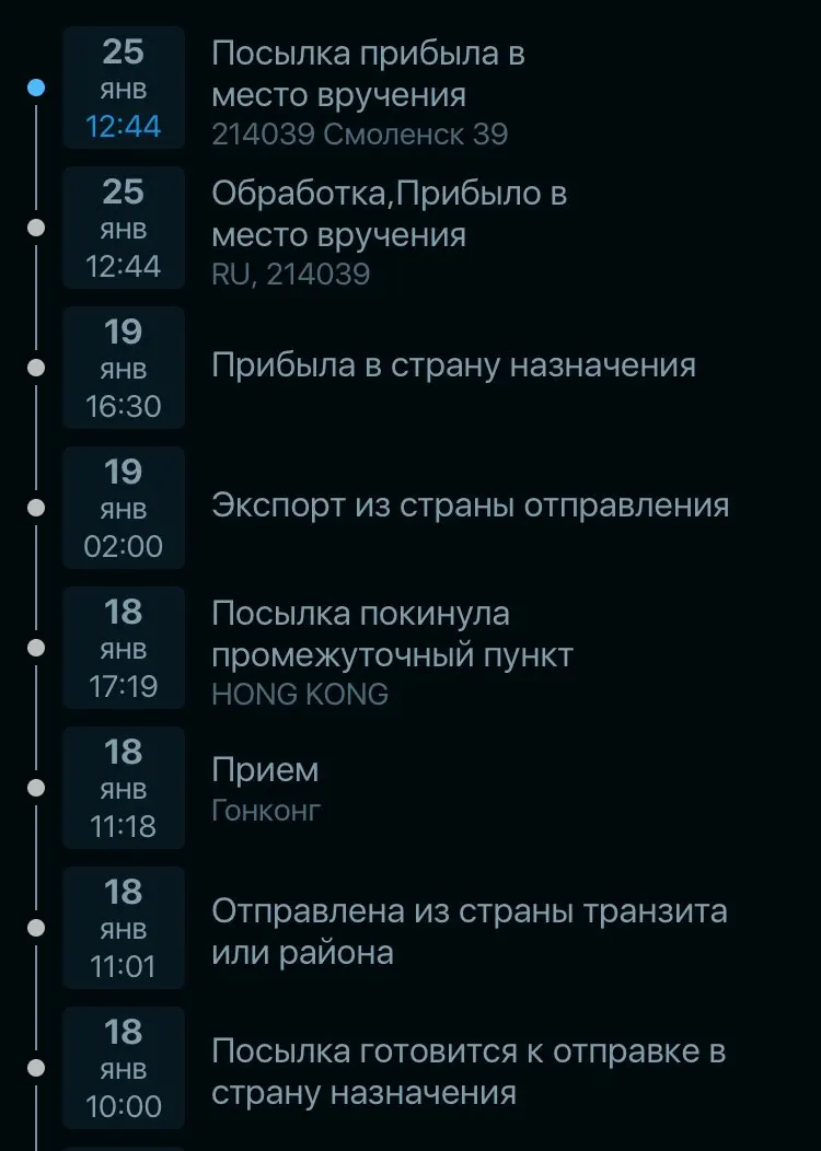 заказ отправляли быстро до г. Смоленска ехал не плохо трек N отслуживался до момента прибытия посылки в РФ затем пришло уведомление о том, что нужно получить.. в части качества: собрано не плохо, но можно былом термо усадку получше усадить.. все работает.. фото как ехала посылка