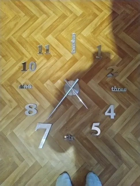• Снимите подложку со стороны наклейки и нанесите на чистую гладкую поверхность • Нанесите зеркало перед наклейкой на стену • Дизайн «сделай сам» позволяет регулировать размер часов • Материал наклейки: вспененный этиленвинилацетат • Материал часов: металл 47 дюймов Часы: 10 см/3,9 дюйма Часовая стрелка: 31,5 см/12,4 дюйма Минутная стрелка: 39 см/15,3 дюйма 37 дюймов Часы: 10 см/3,9 дюйма Часовая стрелка: 23,5 см/9,2 дюйма Минутная стрелка: 31,5 см/12,4 дюйма