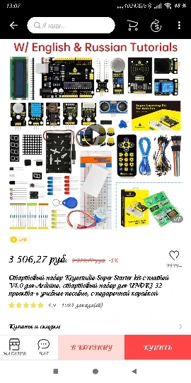 Прекрасный набор, всё сделано качественно! Уже несколько дней, с утра до ночи, собираю различные проекты. Главное на странице у продавца не забыть скачать эти проекты, они переведены на русский язык, что очень удобно. В одном из своих проектов собрал дубликатор домофонных ключей и сделал себе универсальный ключ от всех дверей. Очень доволен. Продавцу большое спасибо. Буду дальше разбираться с программированием.