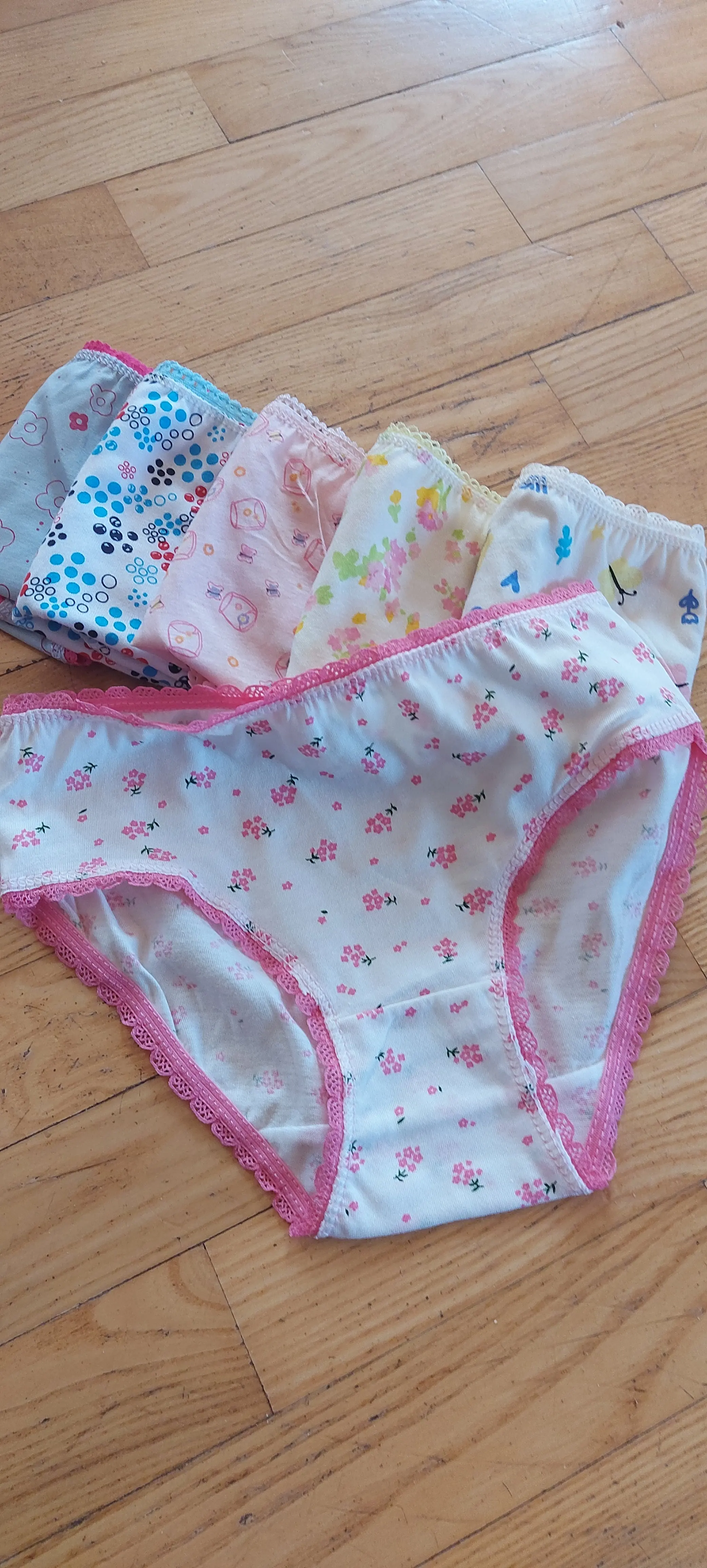 100% хлопок, красивые трусики для девочек, мягкая ткань, размер маленький, моей дочери 7 лет, и я купил 9-10.