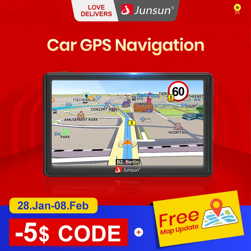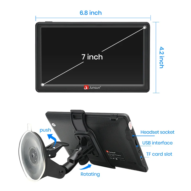 Автомобильный GPS-навигатор Junsun D100, 7-дюймовый сенсорный экран, 256 м + 8 Гб, FM-радио, голосовые подсказки, Карта Европы и России, бесплатные обновления, GPS-навигаторы для грузовиков