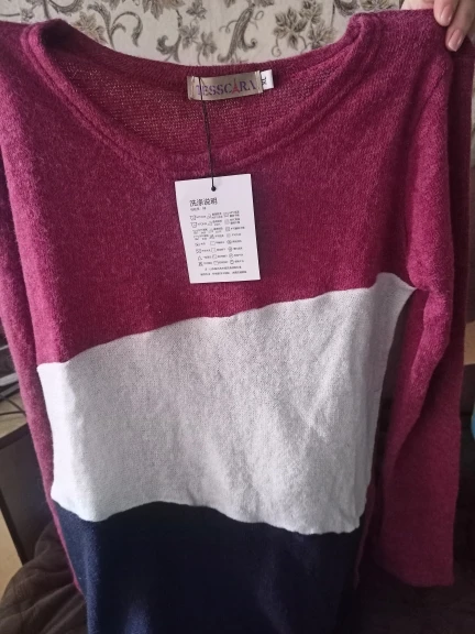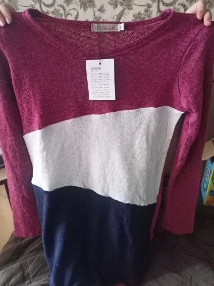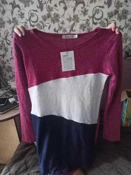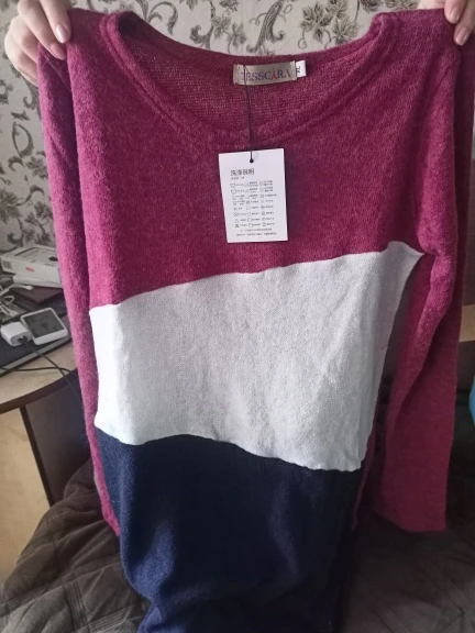 Свитер недостаточно длинный, под него нужно надевать обтягивающую юбку, точно так же, как на модели.