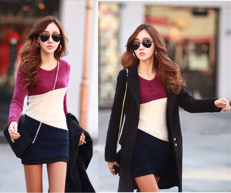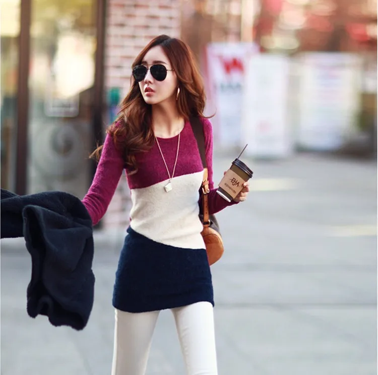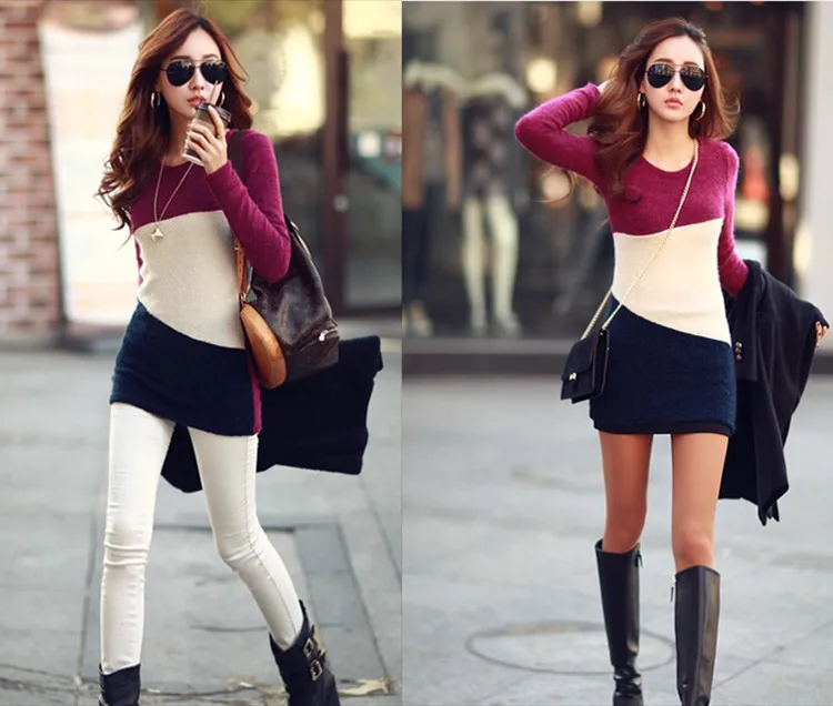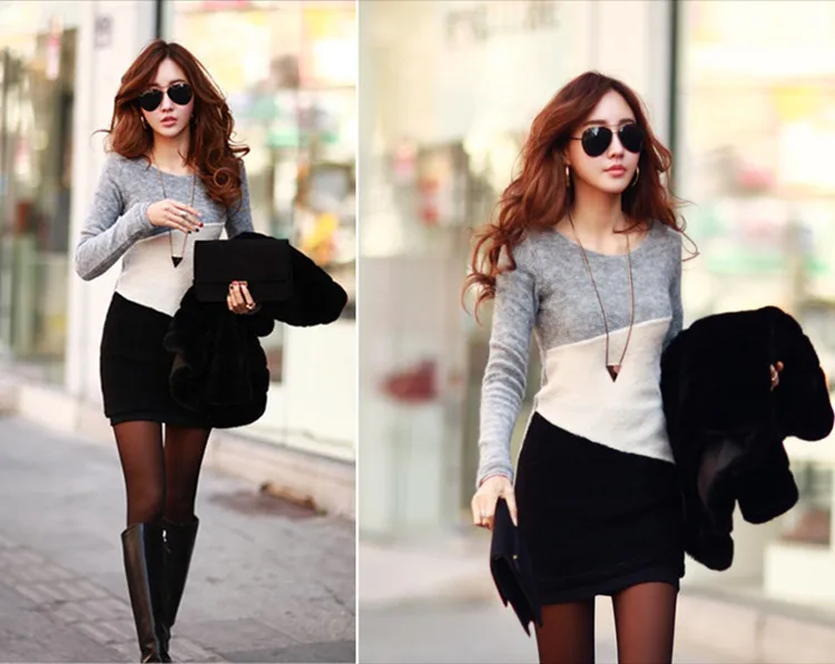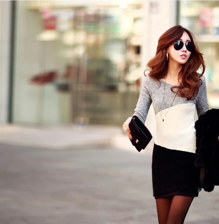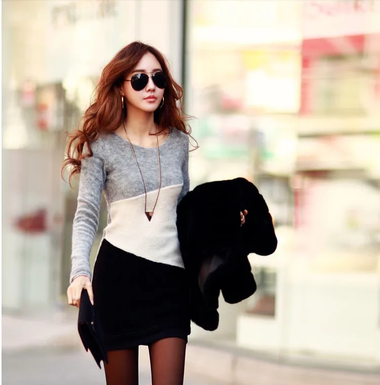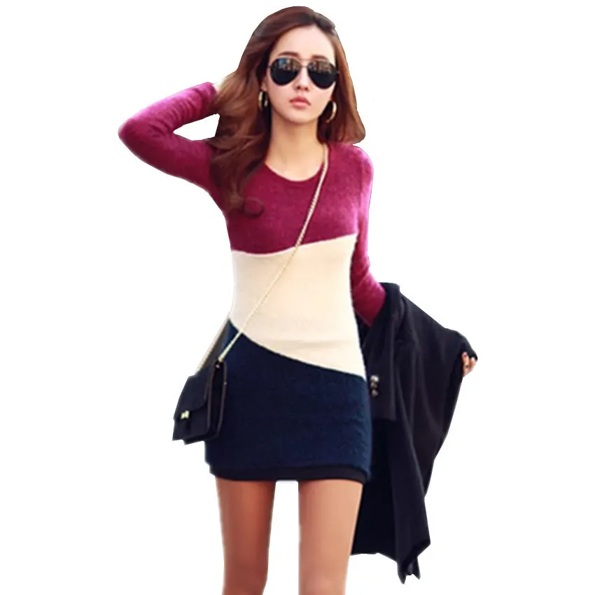 Женское трикотажное платье-свитер, повседневный пуловер с длинным рукавом, весна-осень 2018