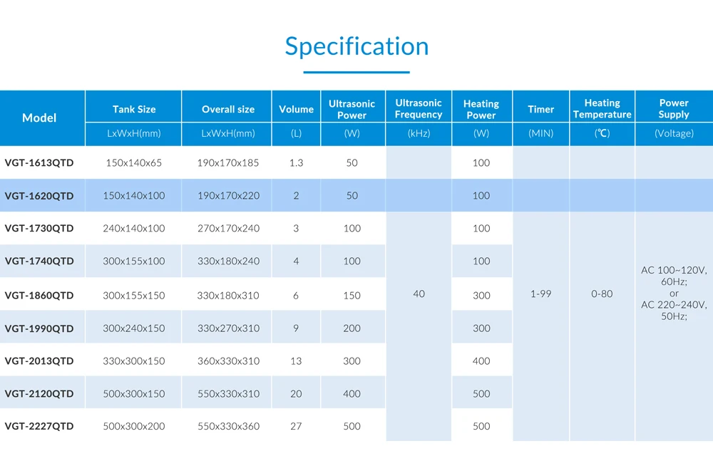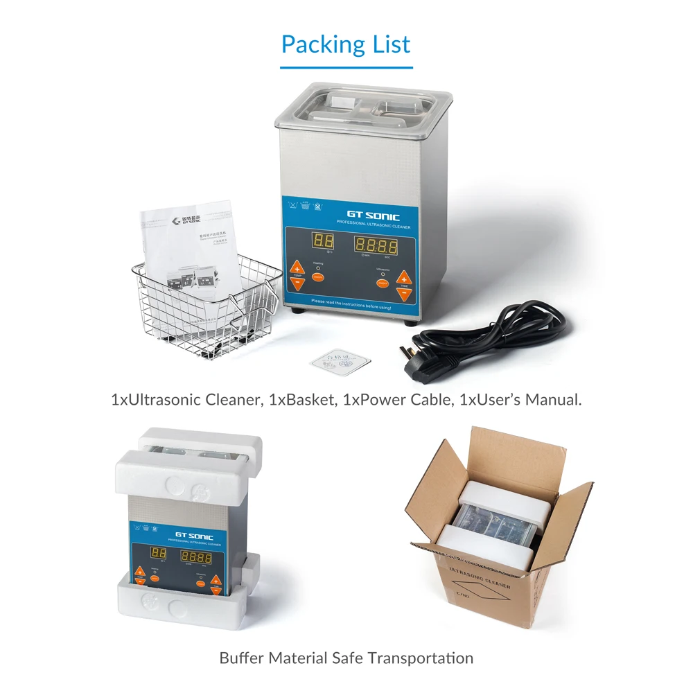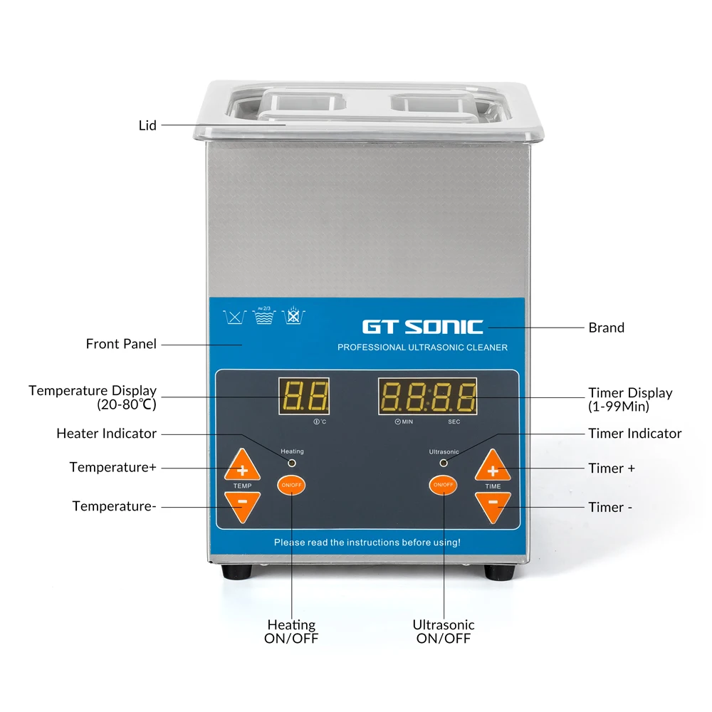 Ультразвуковой очиститель GT SONIC VGT-1620QTD, 2 л, 50 Вт, с цифровым дисплеем, с нагревательной корзиной