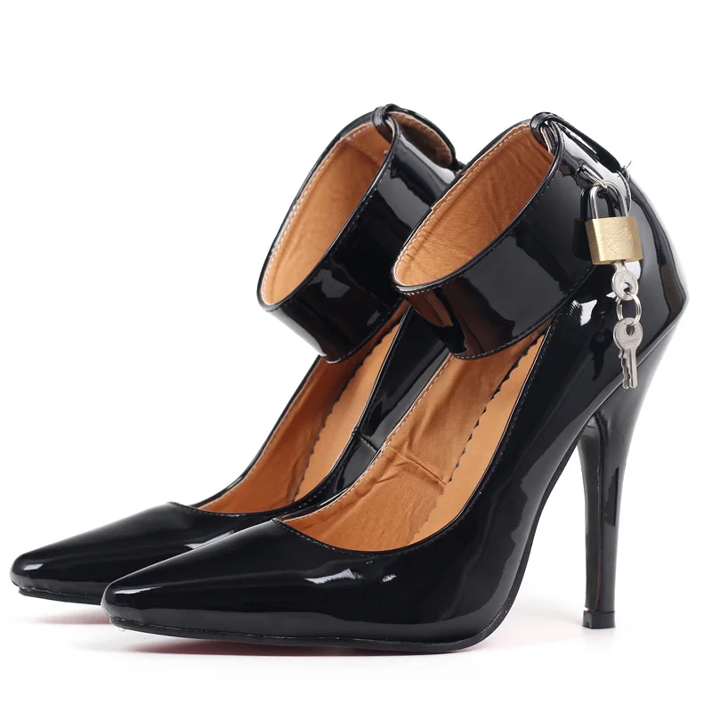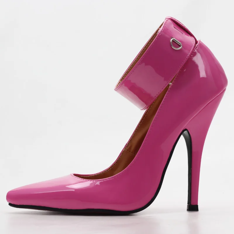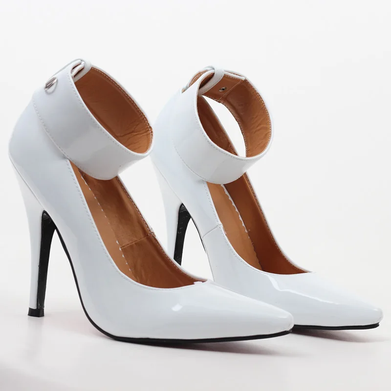 Туфли jialuowei BDSM на высоком каблуке, пикантные Фетиш-туфли-лодочки с ремешком на щиколотке и заостренным носком, с замком 5 дюймов, большие размеры 36-46