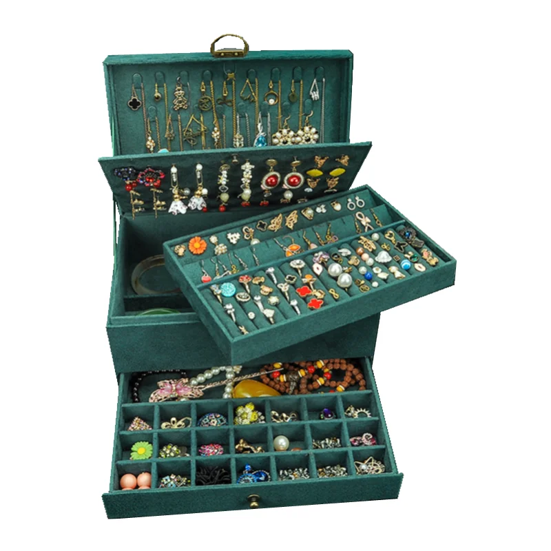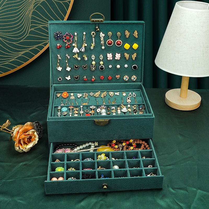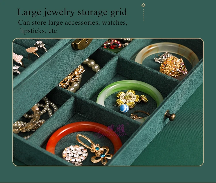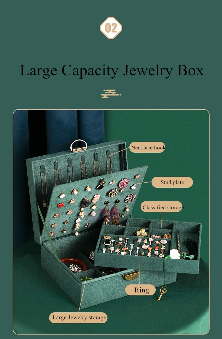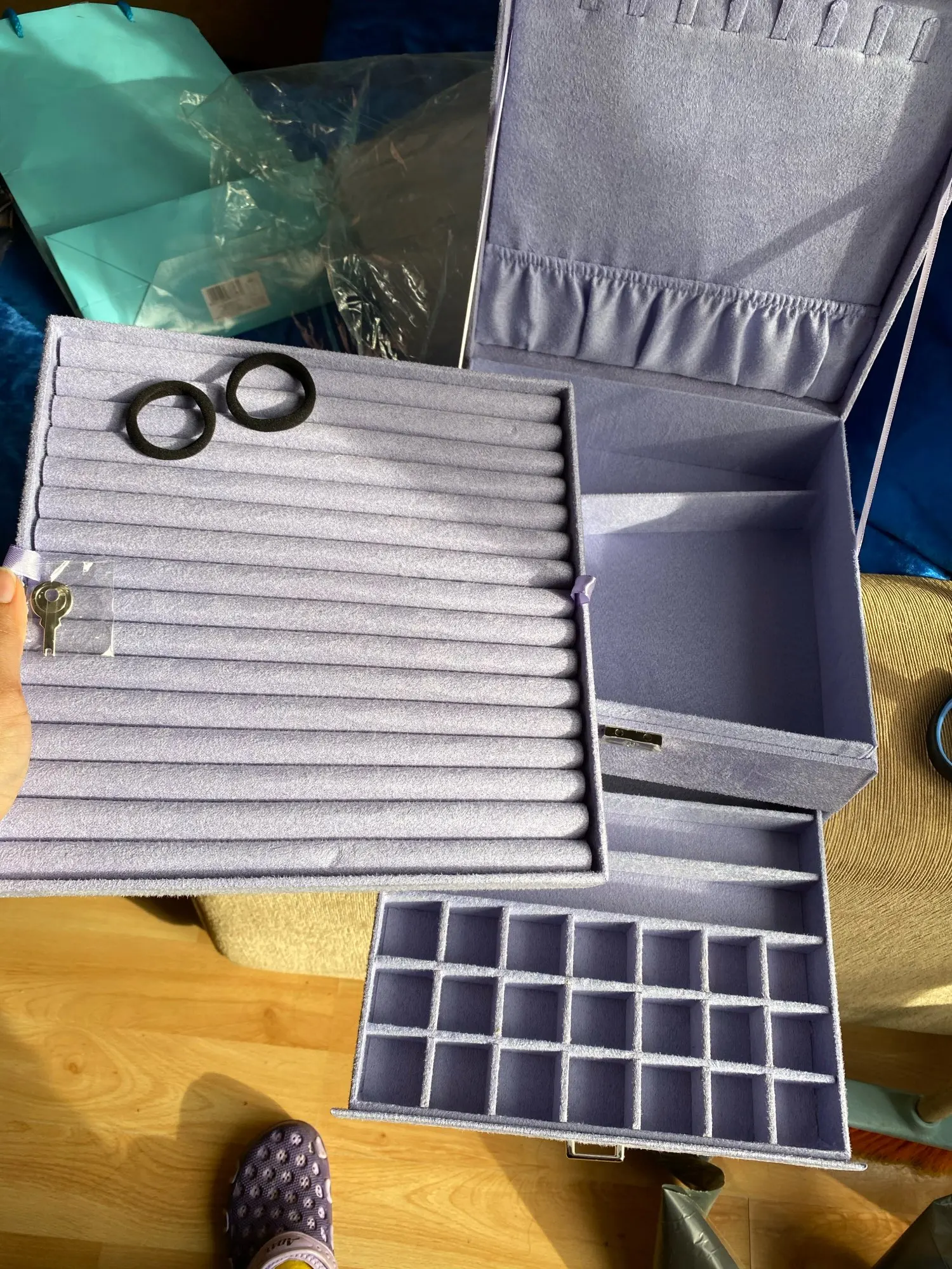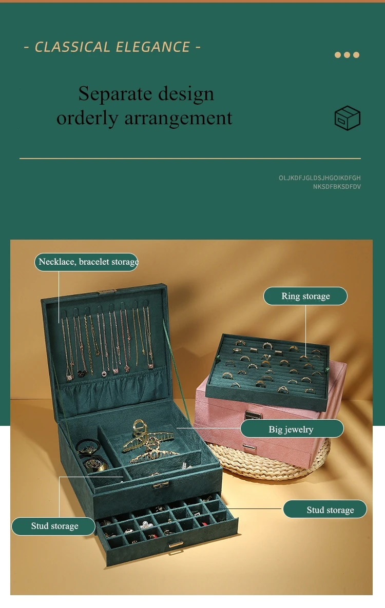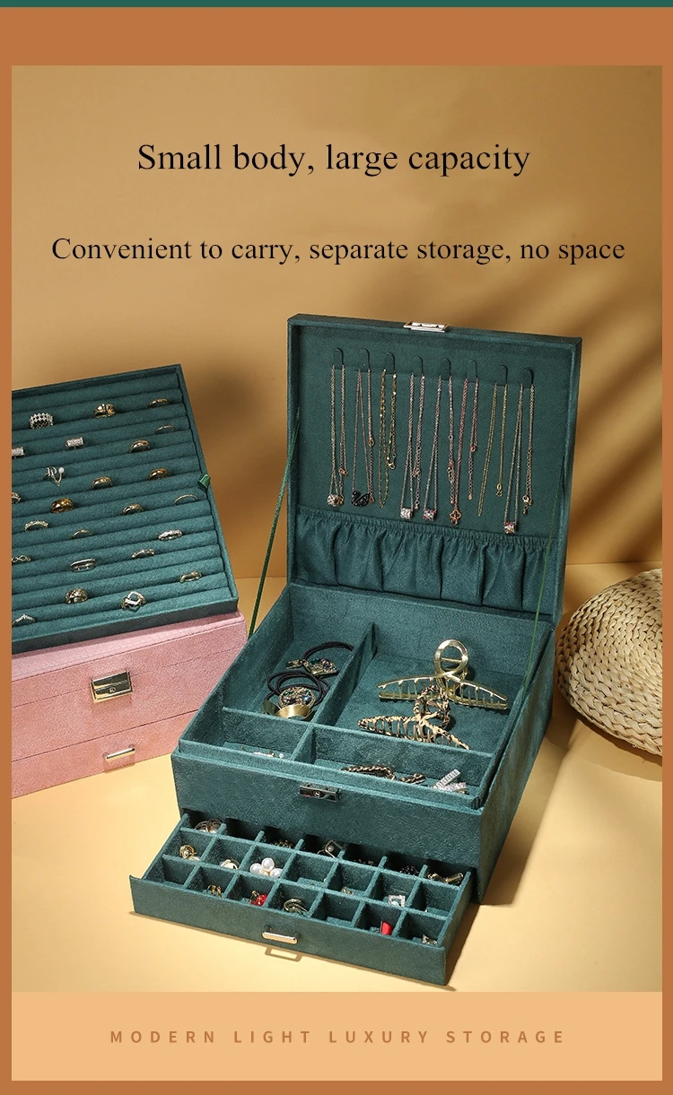 Шкатулка для украшений очень вместительная и может хранить много ювелирных изделий. Материал-не лучшее качество, бархат не ощущается роскошно. Но это делает свою работу, особенно за эти деньги.