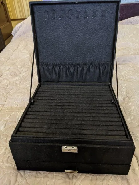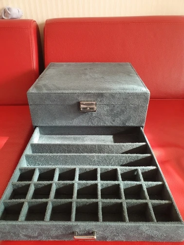 Очень красивая и качественная коробка для ювелирных изделий. Я удивлен, сколько он может храниться! Это может сделать прекрасный подарок. Очень доволен доставкой и продавцом.