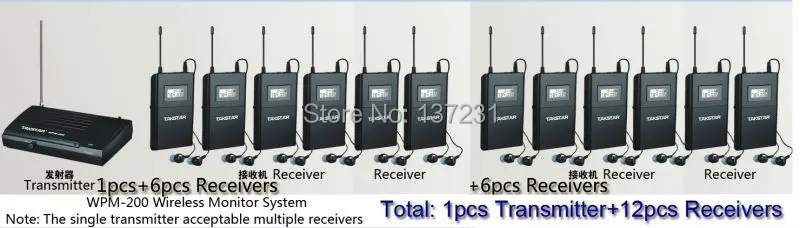 Бутик 1 передатчик + 12 приемников Takstar WPM-200 UHF беспроводной в ухо сценический монитор система в ухо сценический беспроводной монитор