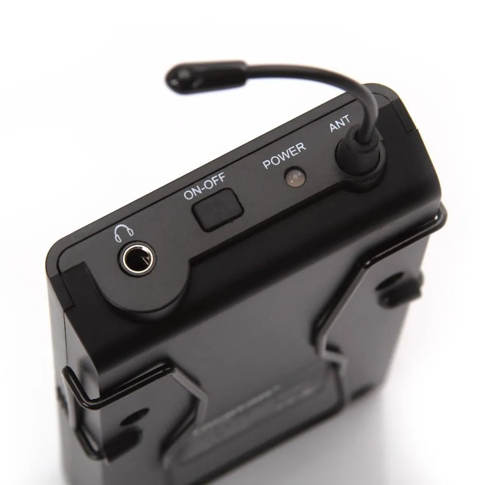 Частотный диапазон UHF(780-789 МГц) и технология синтеза частоты PLL для стабильной работы6 выбираемых каналовПитание от 2шт батареек АА, низкое энергопотребление дизайн для длительного воспроизведения до 30 часовНесколько наборов приемников могут работать с одним передатчиком в рабочем диапазонеСхема динамического расширения для высокого соотношения S/NOКомплексная схема защиты от помех для одновременного использования 4-6 комплектов без взаимных помехПриемник ЖК-дисплей Отображает частоту, канал и уровень заряда батареиПрименение:Студийный мониторинг записи, мониторинг на сцене.Спецификация:Передатчик:Диапазон частот: 780-789МГц