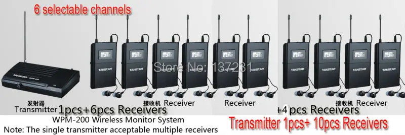 10 приемников + 1 передатчик takstar wpm-200 6 доступных каналов УВЧ 10 приемников в ухо сценическая Беспроводная система монитора от takstar