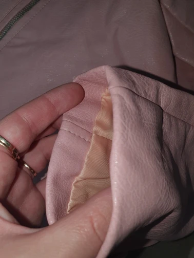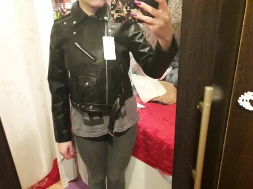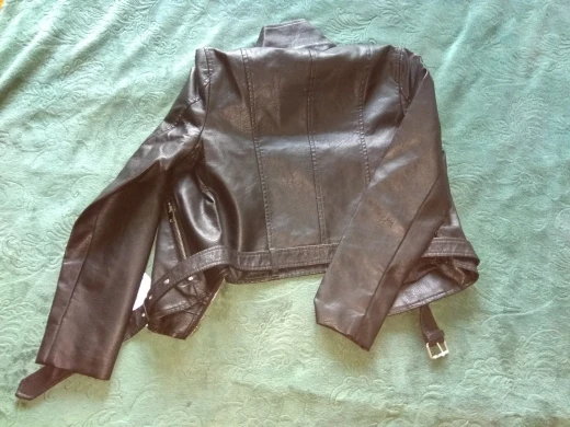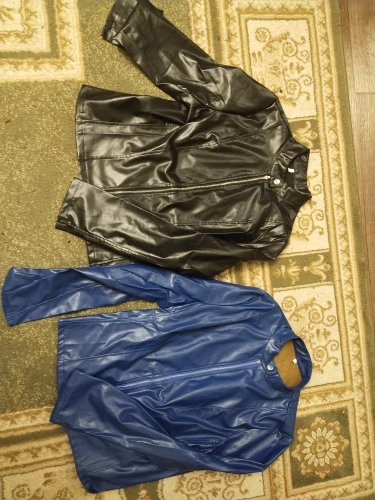 Куртка из кожзама, обычная, хорошо сшита, кожзама среднего качества, на 46 размер XL впритык. Вырез рукава, пройма, немного неправильная, чтоб поднять руки, надо немного засучить рукав. А в целом, все отлично. Рекомендую