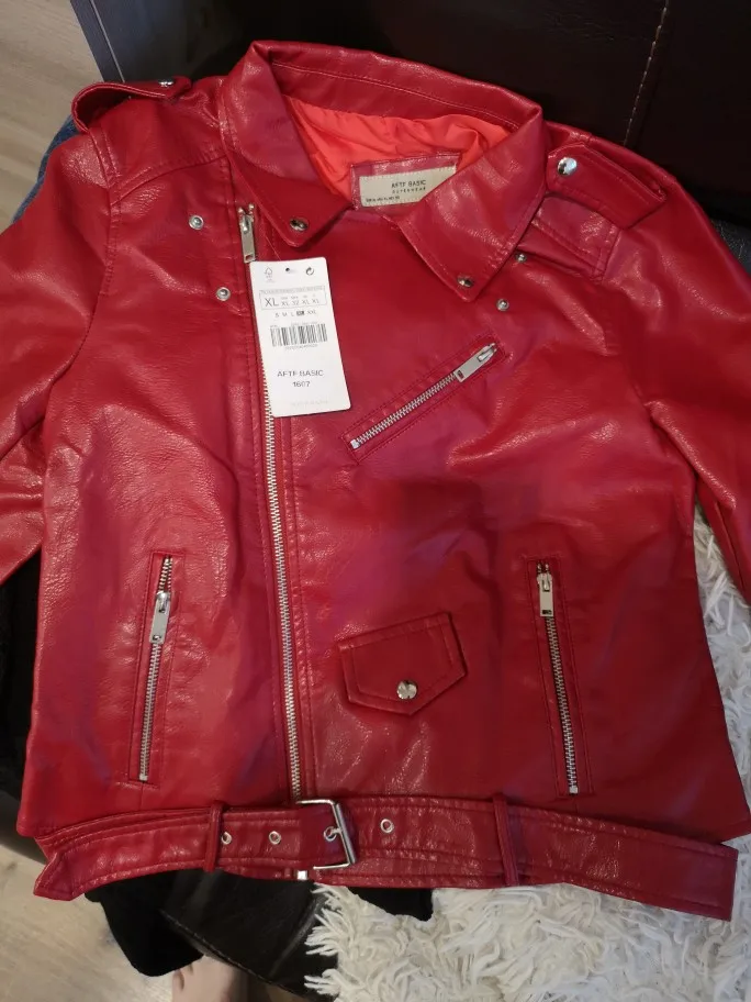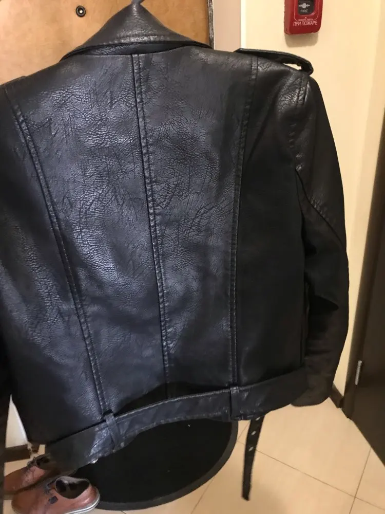 Кожаная куртка выглядит дорого. Очень мягкий и гладкий, удобно носить. Это выглядит как натуральная кожа, и качество/дизайн материала очень удовлетворительный. Больше всего, куртка выглядит действительно крутой! Плечо немного меньше, мне нужно было купить на 1 размер больше. Остальное отлично.