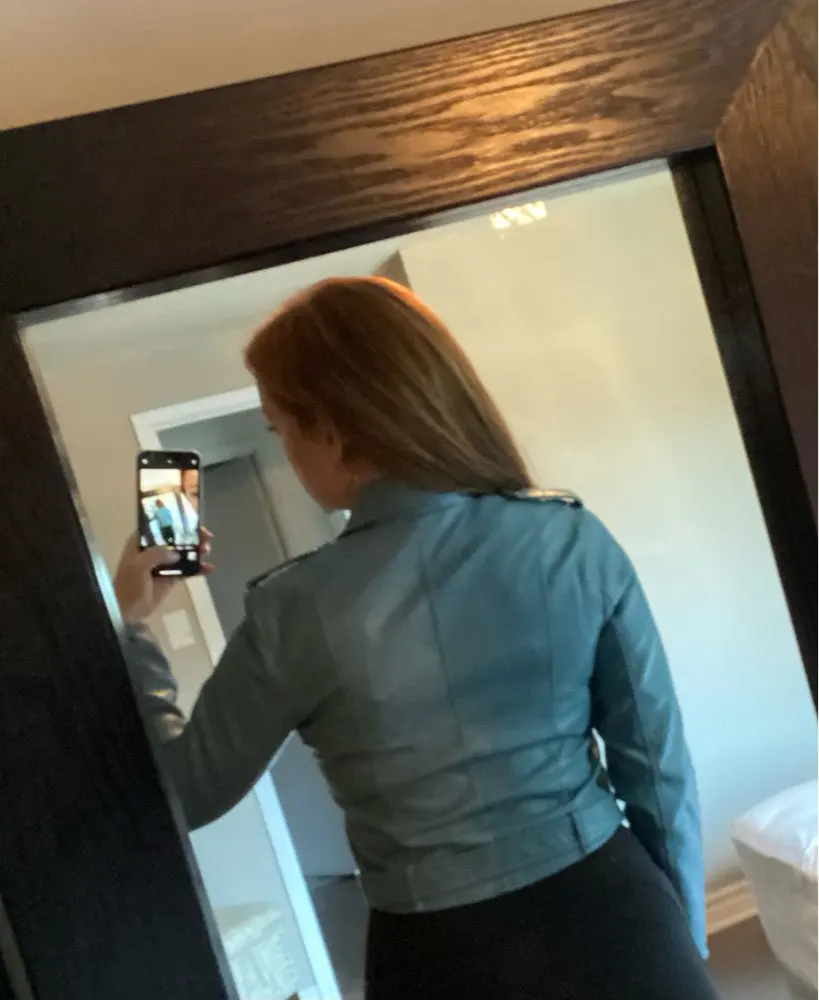 Абсолютно красивая куртка, я обычно ношу M и носила L, основываясь на рекомендации продавца, и она идеально подходит. Очень доволен покупкой, спасибо