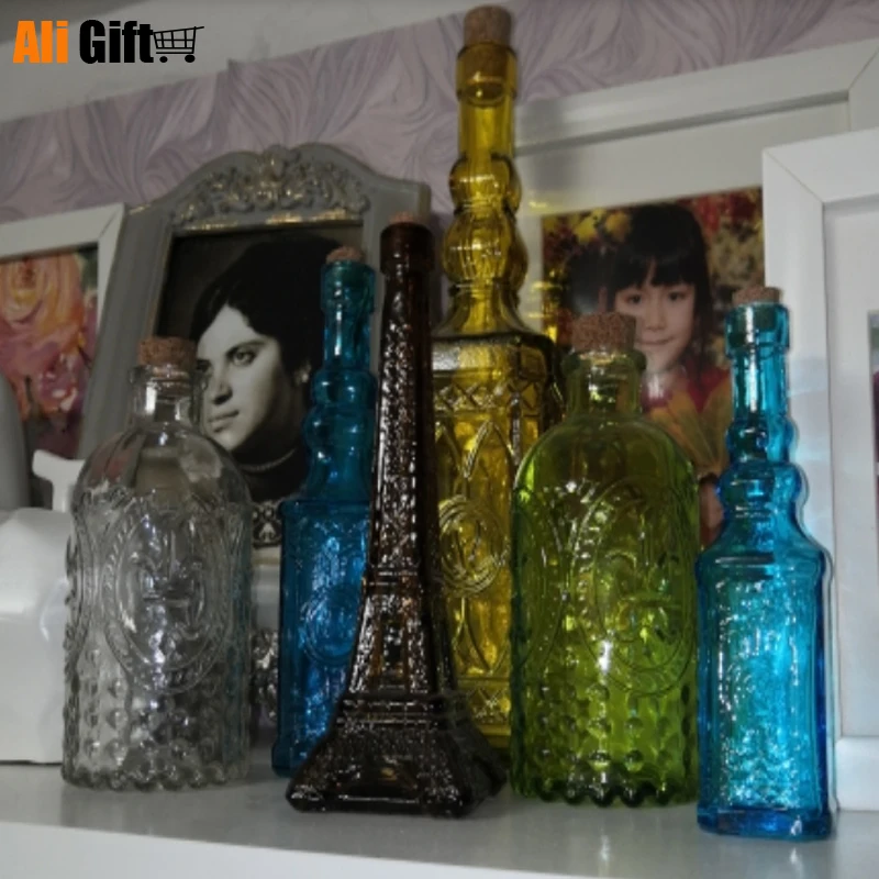 Маленькая винтажная резная стеклянная ваза вазы башни для дома, украшения реквизит для фотосессии Хрустальная бутылка для зелья, зеленое растение, Цветочный декор