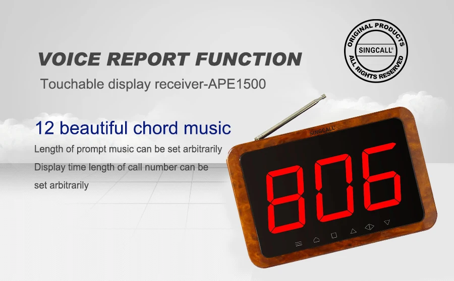 Вы когда-нибудь в ресторане, здесь вы готовы принять ваш заказ, но вы не можете найти в любом месте официанта или без ожидания? Система вызова беспроводного оператора или сервера может решить вашу проблему.Беспроводная Жидкостная система широко используется в области обслуживания. В комплект входит Кнопка использования часов для гостей и приемник сигнала с помощью официанта. Когда гость нуждается в какой услуге, он или она просто нажмите кнопку рядом с ним, его или ее номер стола будет отображаться в музыки или смотреть пейджер предупреждающий голос. Поэтому официант может обеспечить очень своевременное обслуживание. Добро пожаловать, чтобы выбрать клиентскую кнопку вызова и голосовой дисплей.