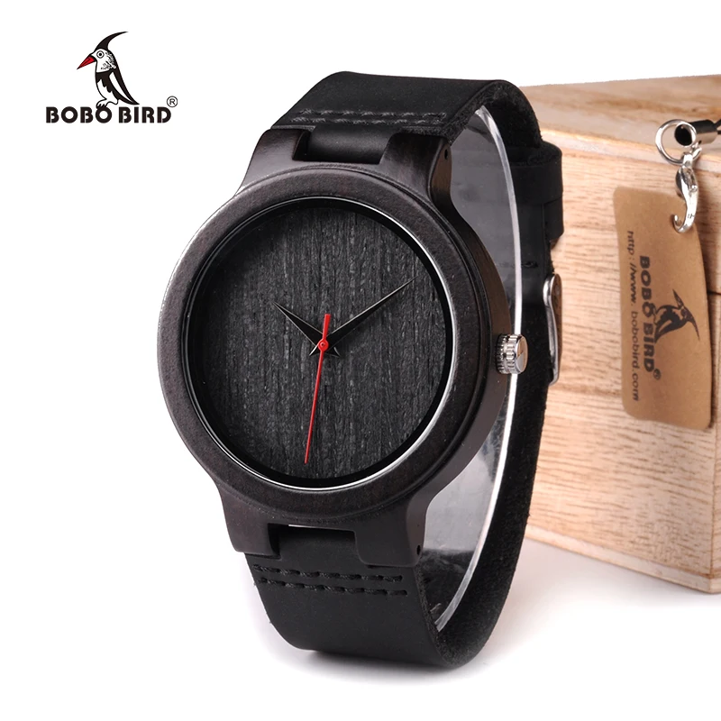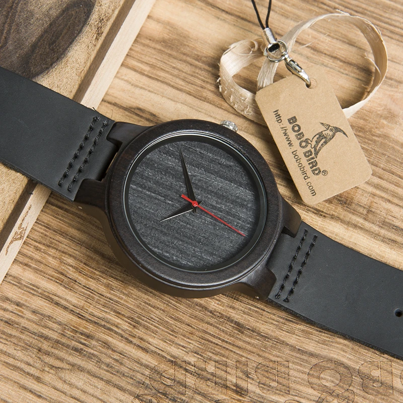 Часы BOBO BIRD WC22 из эбенового дерева с красным указателем на кожаном ремешке, японские, Miyota 2035, мужские, t, кварцевые часы для мужчин, женщин, мужчин