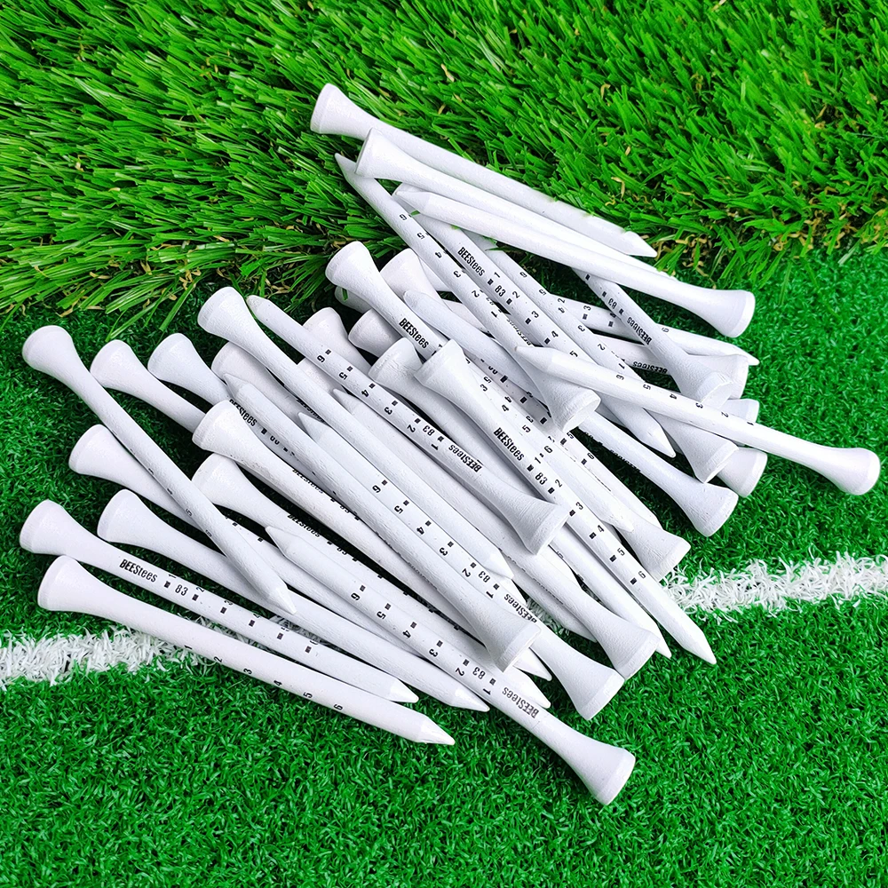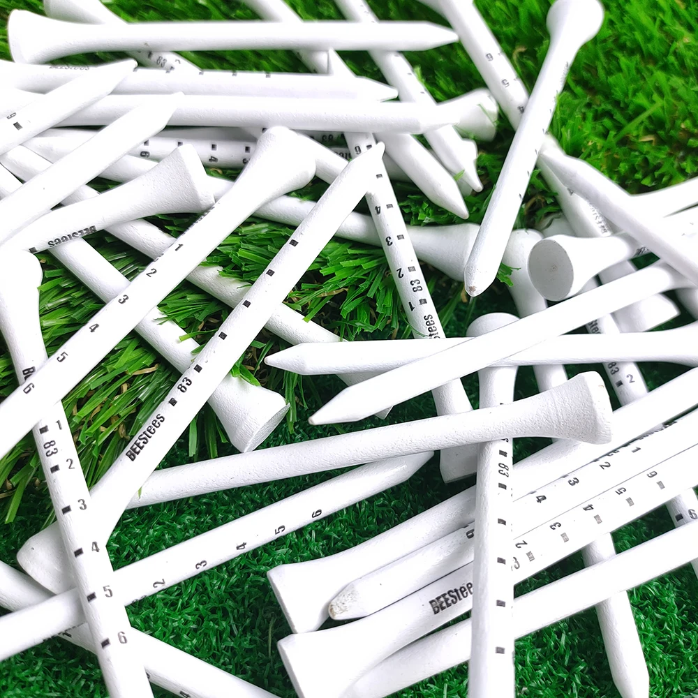 Горячая Распродажа, 100 шт., профессиональные футболки для гольфа, 83 мм, деревянная тенниска, 3,3 ", белые полосатые цифровые весы, тренировочные принадлежности для гольфа Особенности: Материал: дерево Размер: 83 мм Цвет: белый Посылка: 100 * тенниска для гольфа
