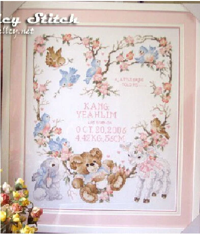 Объявление о рождении новорожденных запись засчитанный Набор для вышивки крестиком вышивка мультяшный медведь цветы сделай сам для украшения детской комнаты