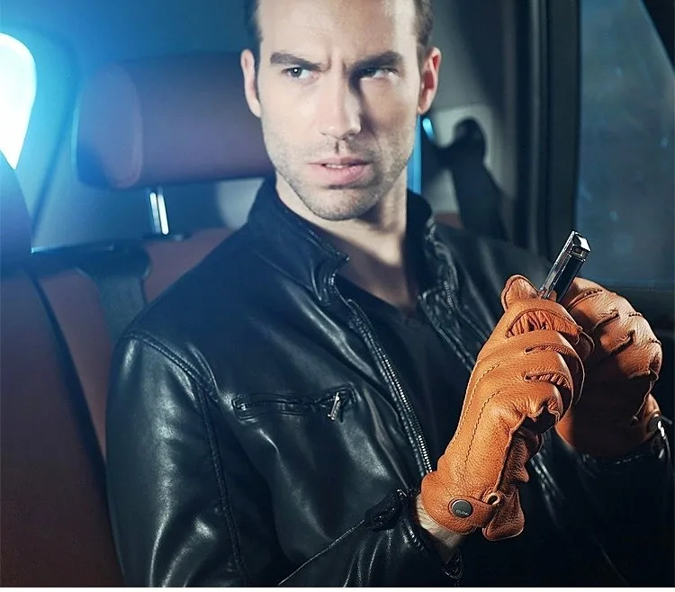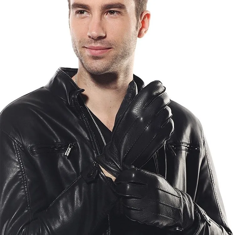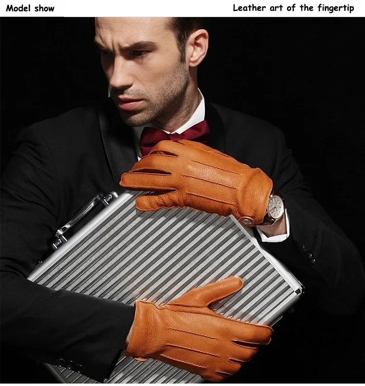 Высококачественные мужские перчатки из оленьей шкуры, кожаные перчатки для вождения, Осень-зима, теплая кашемировая вязаная подкладка, EM012WR