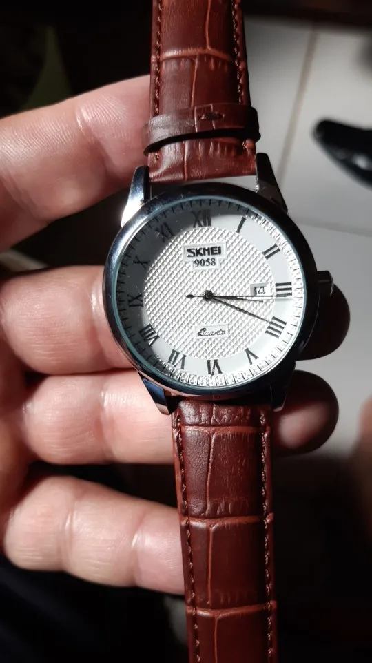 Ремешок хуже по качеству, чем показано на фотографии, вы можете видеть, что на концах, близких к часам, он не сшит, а имеет остатки, склеенные клеем. Это мелкая деталь, которую вы едва видите, и по цене часы практически непобедимы.