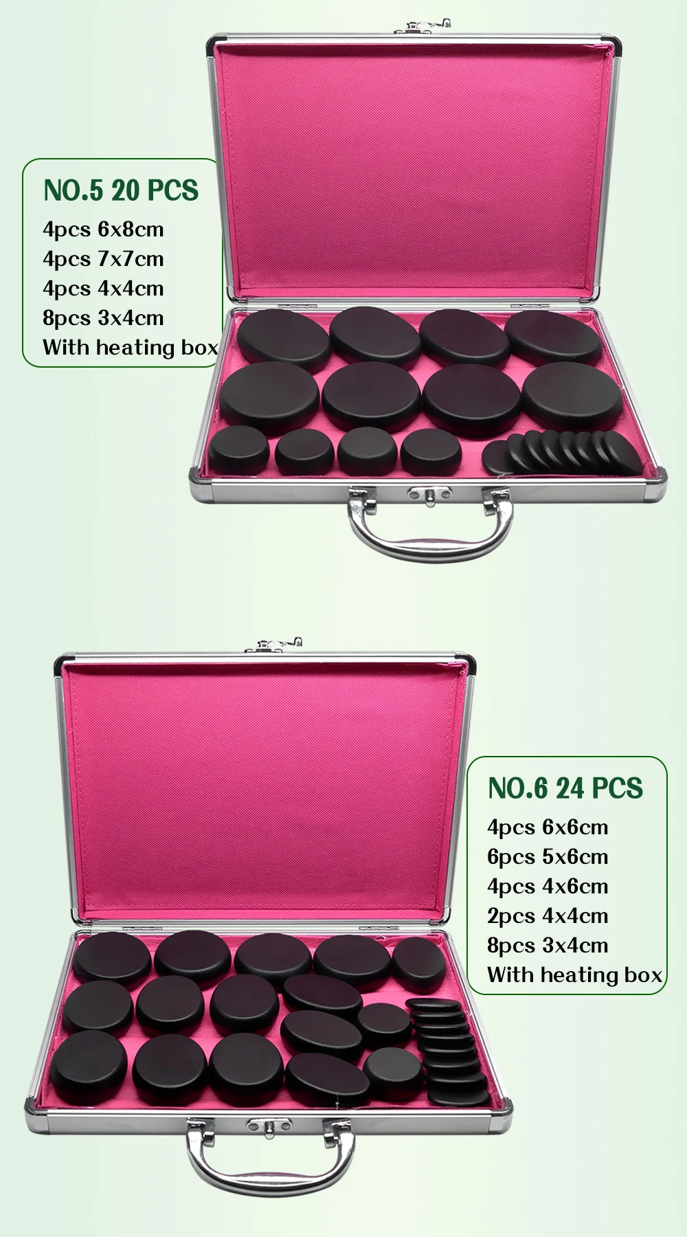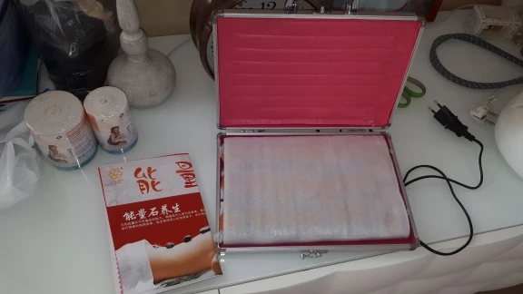 Товар понравился! Чнмоданчик греет ) Продавец положил в комплект переходник для российской розетки. Набор камней тот, что я и заказывал. Товар хороший. Спасибо продавцу! Совет покупателям - при включении чемоданчика, под него нужно ложить что то термостойкое. Потому что при долгом нагревании дно чемодана сильно нагревается. У чемоданчика, к сожалению, нет ножек.